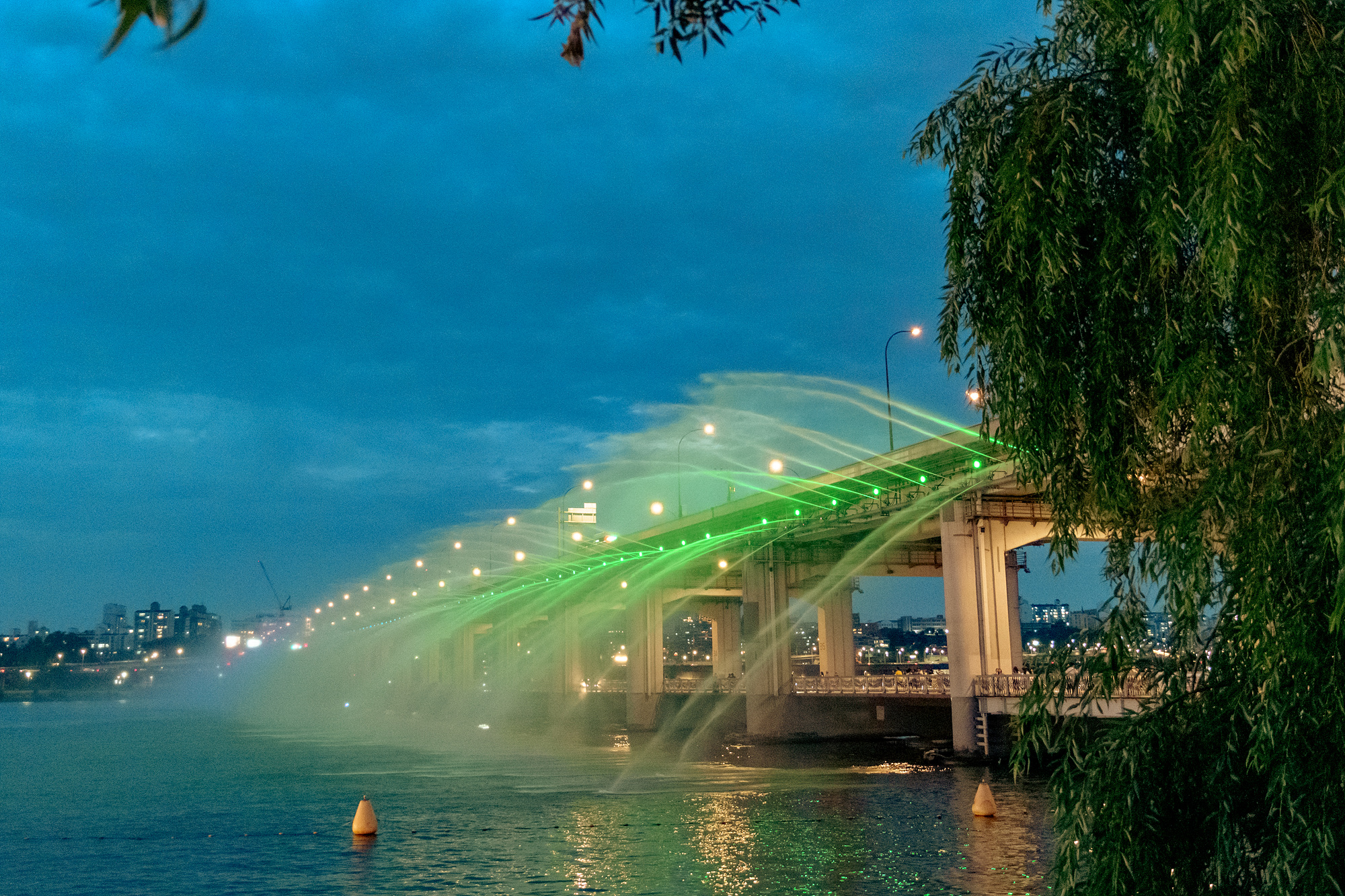 저녁이 되면 반포대교의 분수가 시원한 물줄기를 한강으로 뿜어냅니다.