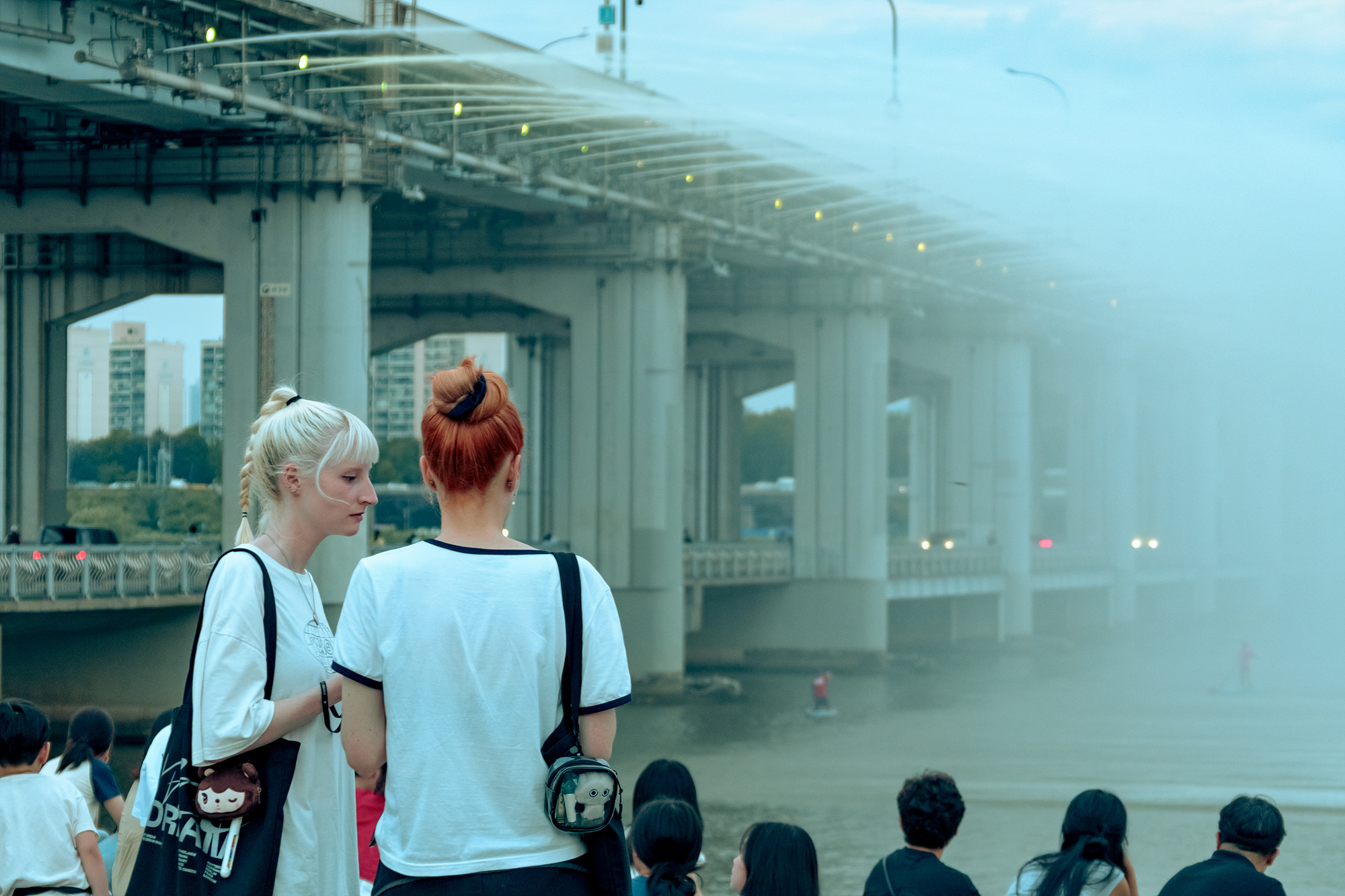 오랜만에 찾은 잠수교는 제 기억과는 다른 분위기였습니다. 한여름 찌는 더위에도 불구하고 정말 많은 사람이 분수가 가장 잘 보이는 장소에 앉아 있었습니다. 교토에서 느꼈던 것처럼 온 세상 다양한 인종이 한강공원에 앉아 있는 모습은 무척 생경했습니다. 특히 예전에는 보지 못했던, 한강에서 패들보드나 제트스키를 타는 사람들도 있어서 정말 짧은 시간에 이곳의 모습이 빠르게 변하고 있다는 생각이 들었습니다.