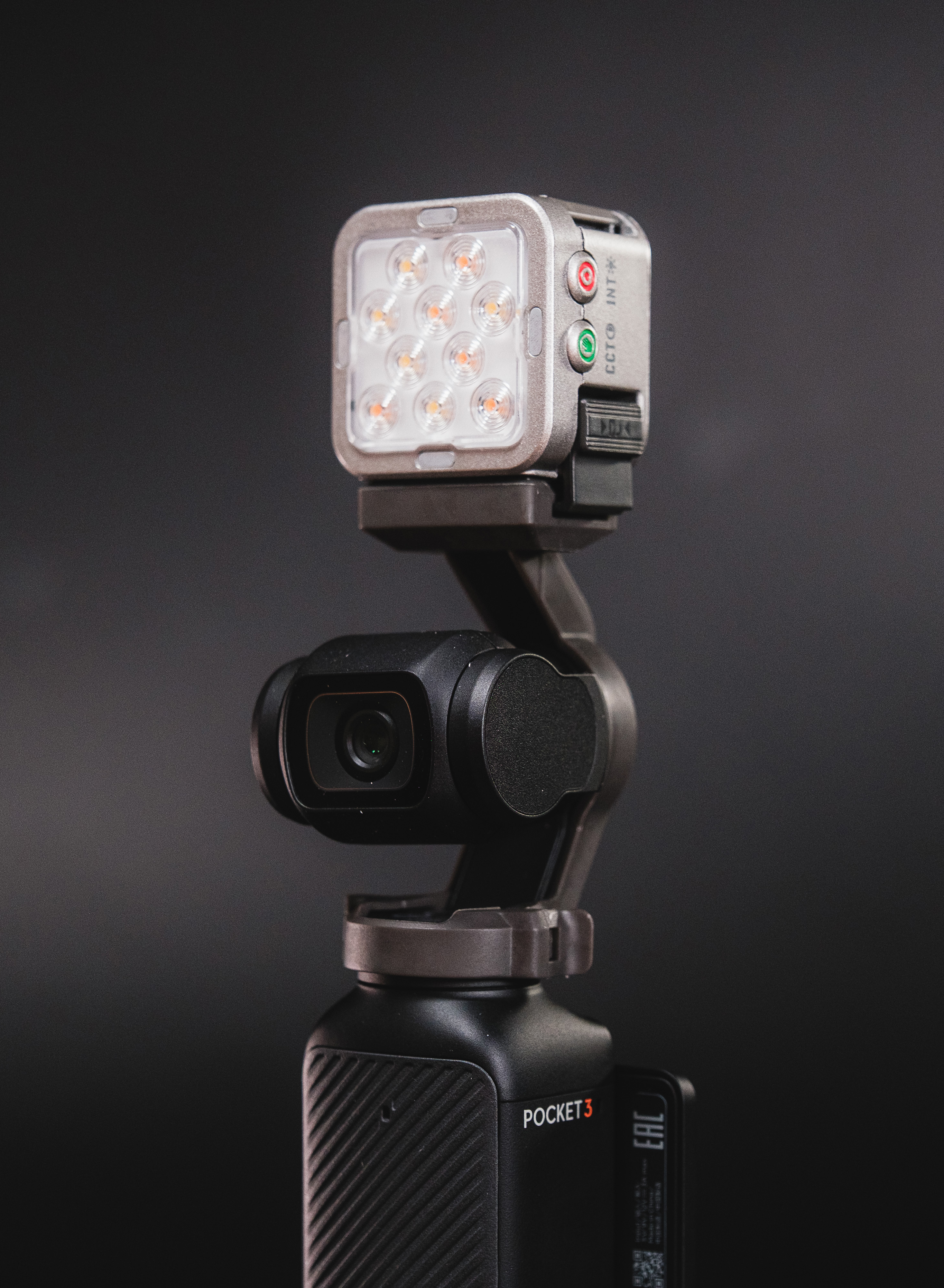 할로우(Harlowe)에서 포켓3와 액션캠을 위한 초소형 LED 조명을 선보였습니다. 다양한 마운트를 지원해서 다용도로 사용할 수 있는 혁신적인 제품이라 소개해 드립니다! 패키지가 검정 박스에 고급스럽습니다. 왼쪽은 아톰2 포켓 라이트 키트, 오른쪽은 아톰2 유니버셜 크리에이터 키트입니다. 아톰2 본체와 디퓨저, 파우치, 케이블의 구성품은 동일하고 각각 포켓 마운트와 액션캠, 콜드 슈 마운트 구성이 다릅니다. 아톰 2 포켓 라이트 키트의 구성입니다. 아톰 2, 디퓨저 돔, 방진형 C타입 포트, C to C 케이블, 포켓3 커넥터, 파우치, 설명서가 들어있습니다. Harlowe Atom 2 본체 아톰 2 본체부터 살펴보겠습니다. 앞쪽에는 색온도 조절이 가능한 바이칼라 LED와 주변에 디퓨저를 위한 4개의 자석이 있습니다. LED 앞에는 프레넬 렌즈가 있어서 빛의 확산을 도우며 2W 조명으로 부스트 모드 사용 시 4W 밝기까지 올라갑니다. 뒤쪽에는 할로우 로고와 앞과 마찬가지로 4개의