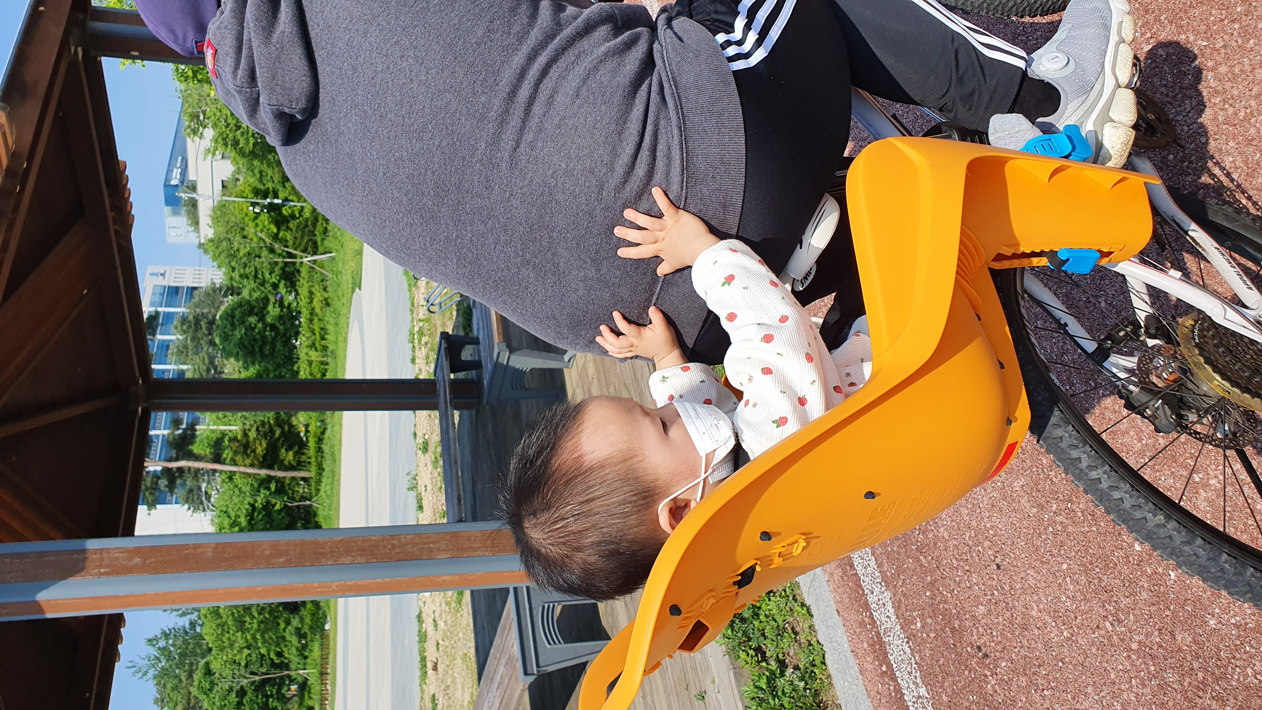 우리아들 자전거가 아빠 안전운전 걱정하며~ 아빠 방댕이에 손을 꼬~~~옥~~~ 아빠 엉덩이 잡은거 맞지? 아빠 안전운전할께~~~^0^