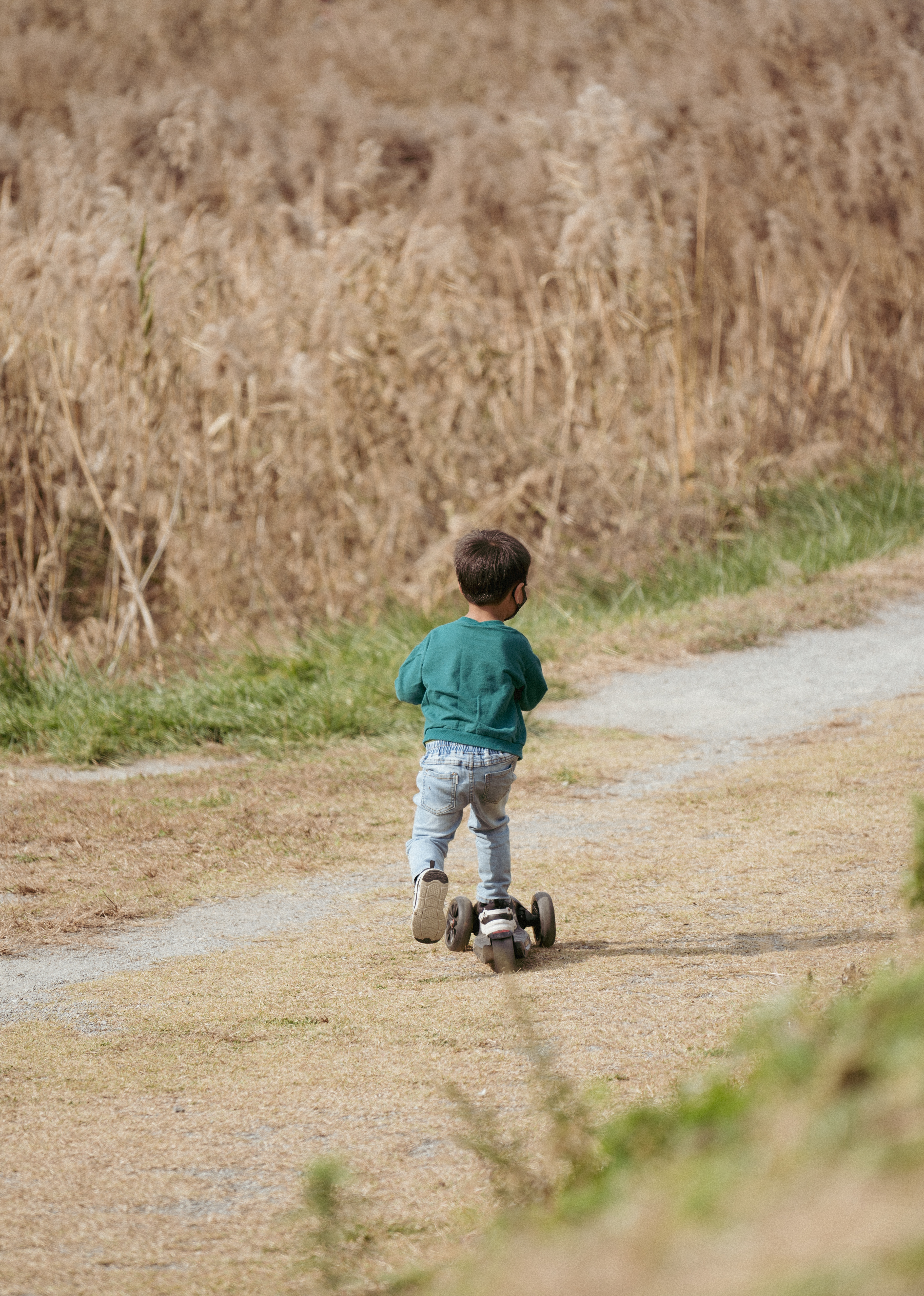 흔들리는 갈대사이를 달리는 멋쟁이 아이