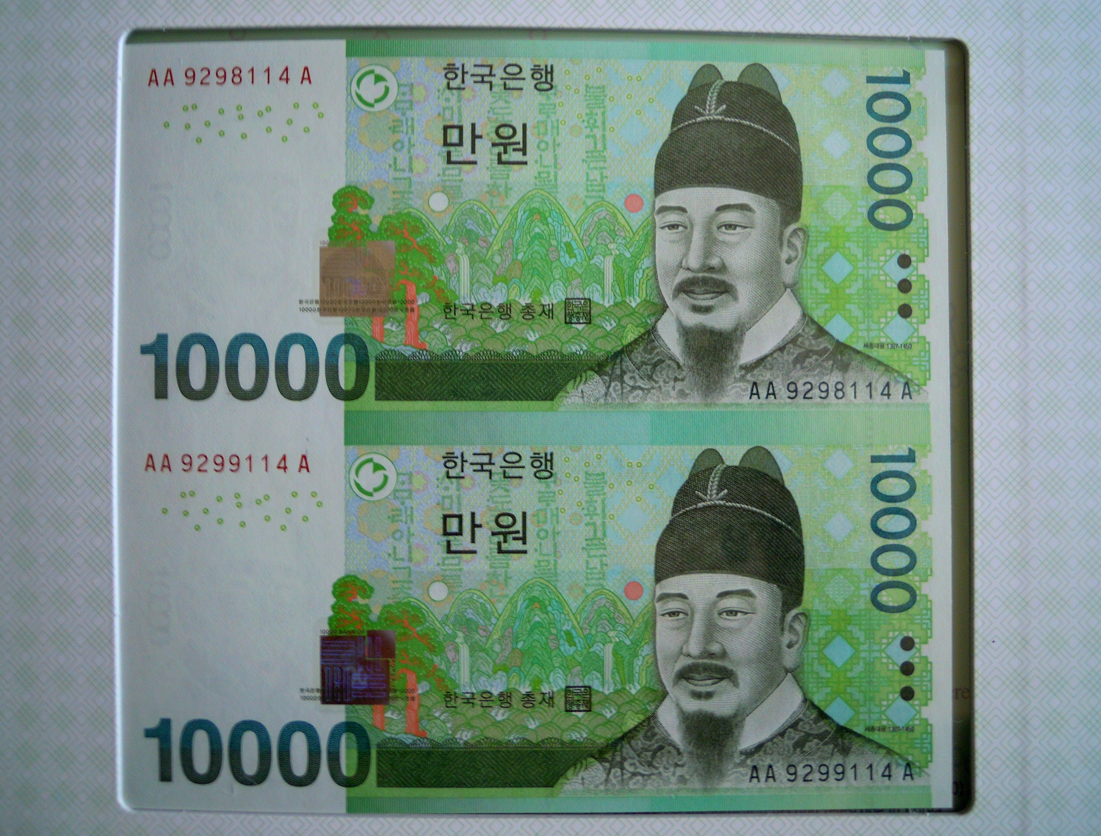 연결된 만원권 기념 지폐 입니다.