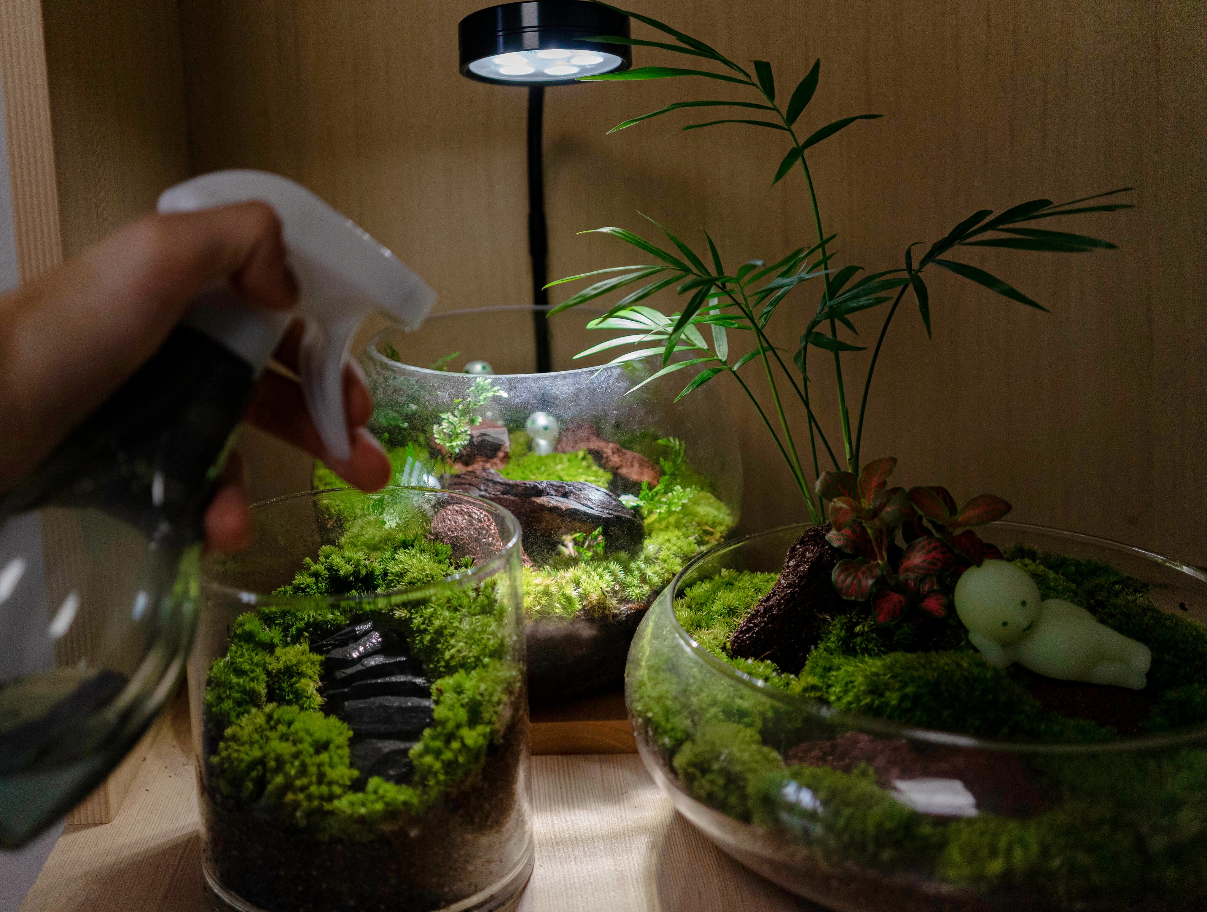 책상 위에서 푸르름을 유지하는 테라리움들을 보며 분무기로 물을 뿌리면 나는 풀내음이