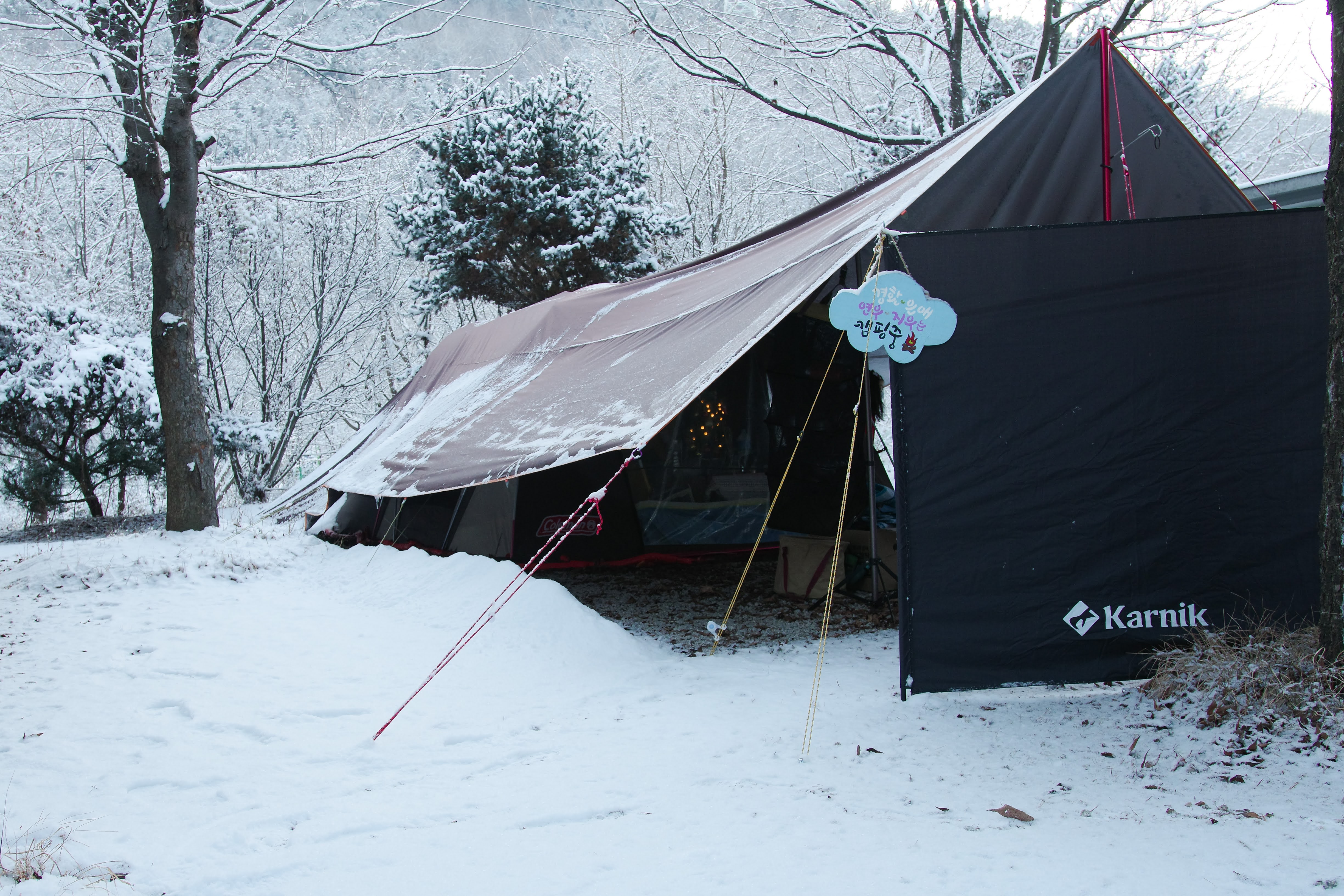 장박지에서 눈 내린 아침의 모습을 찍은 사진입니다.
