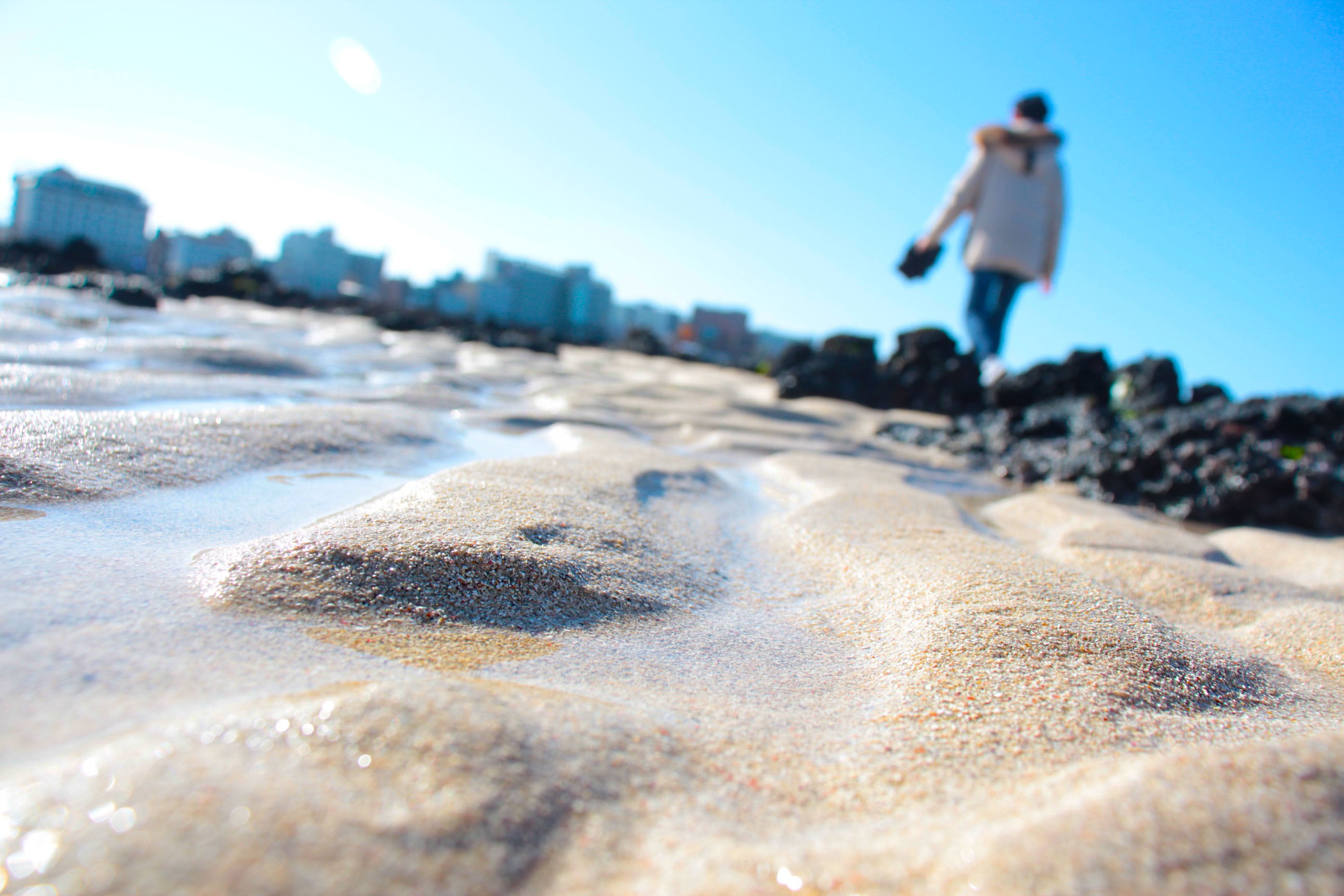 고등학교 친구들과 함께 제주도 바다로 놀러갔습니다눈이 내리는 바다가 아닌 하늘이 맑은 겨울철 바다는 모래와 빛이 모여 아름다운 모습을 보여주고 있었습니다