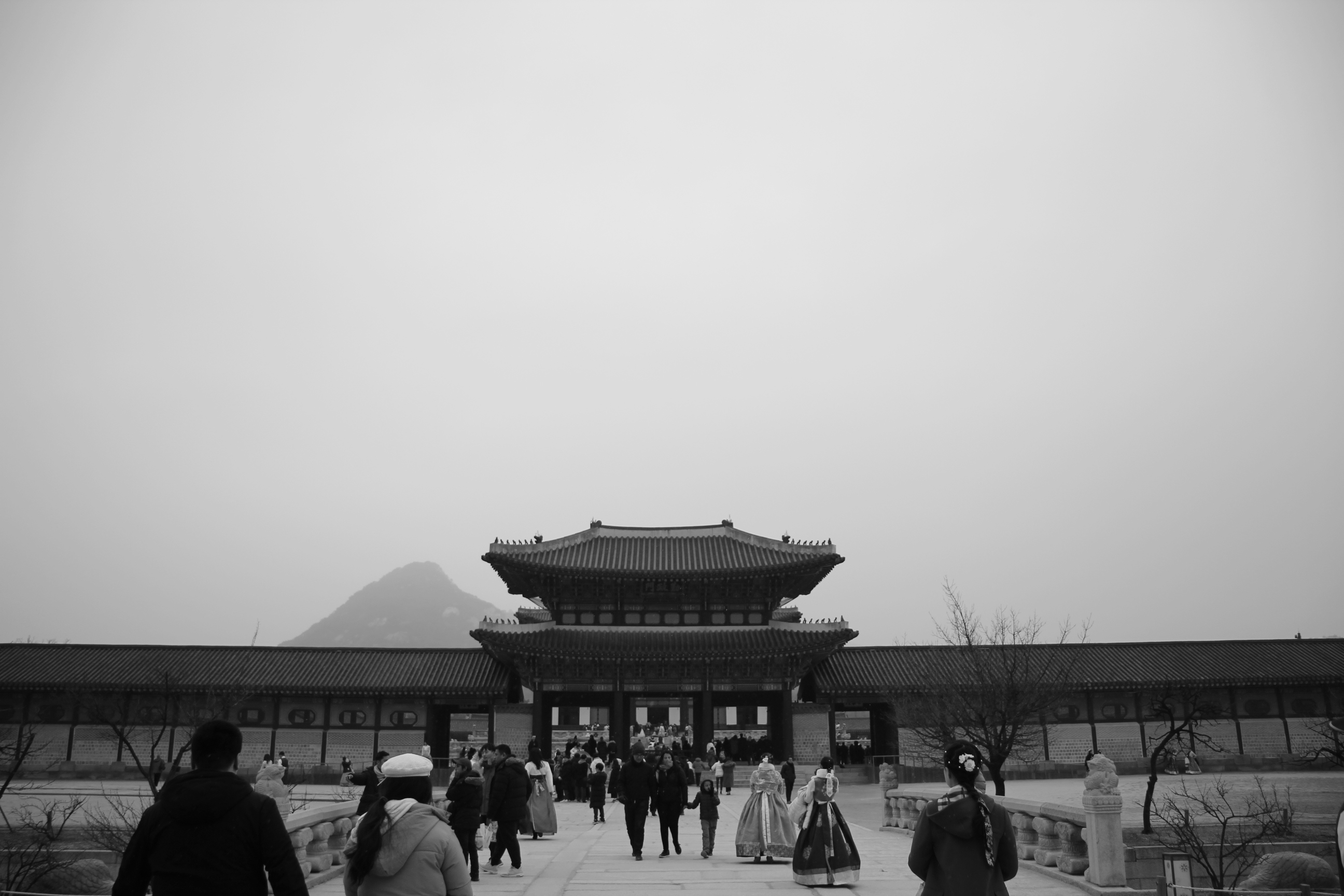 1월 달 혼자서 서울 여행을 떠났습니다경복궁에 도착하여 지하철에서 나왔을 때하늘에서는 눈이 내리고 있었습니다하늘은 뿌옇게 하얗고 옛날 느낌이 들어서 흑백으로 사진을 찍어보았습니다