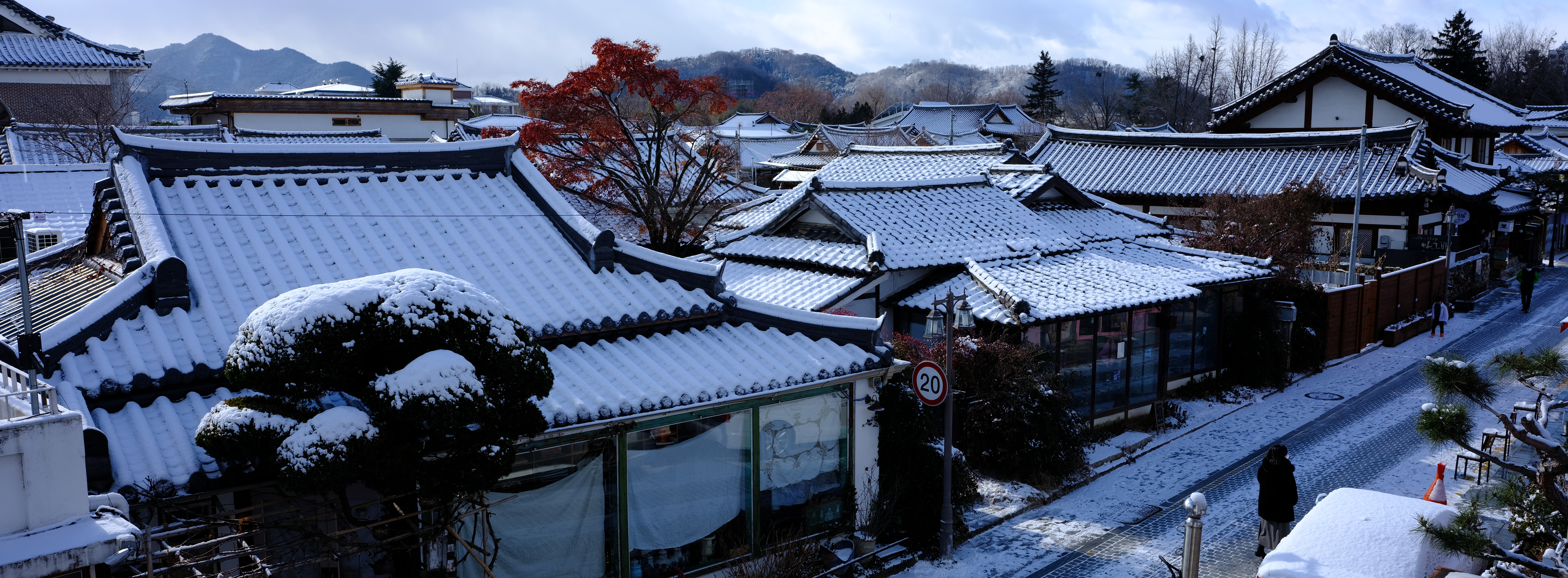 눈 내린 한옥마을의 기와가 참으로 아름다웠던 아침 소경입니다.