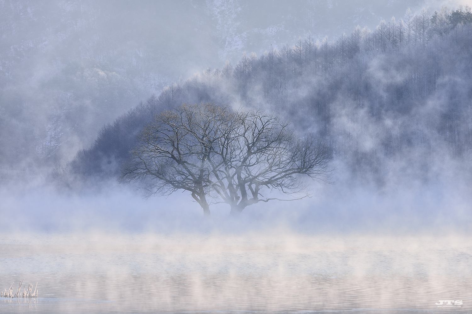 겨울 합천호에서 만날수있는 물안개피는 모습입니다.