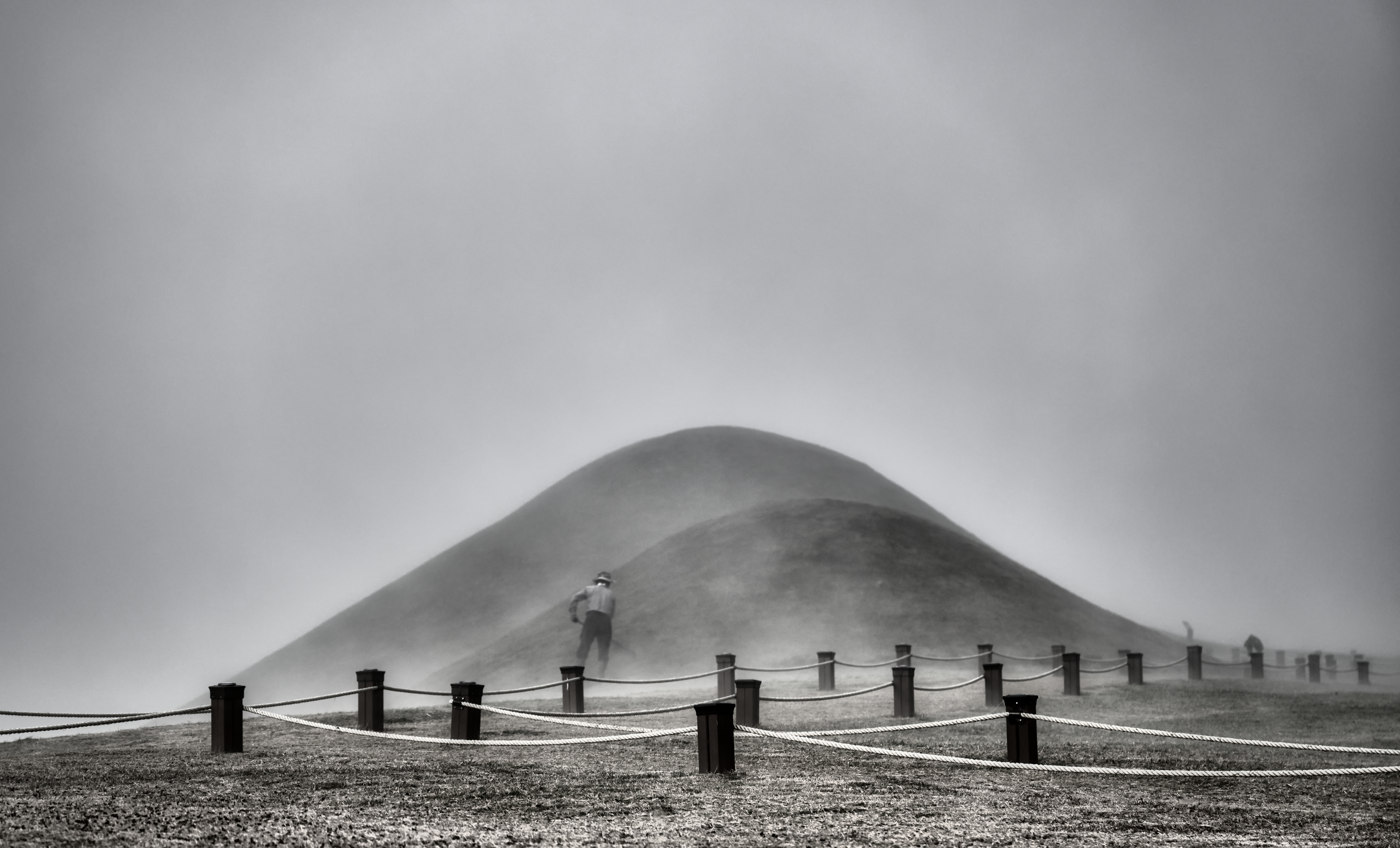 어느 새벽 아침, 창녕의 고분에서 제초 작업을 하고 계신 노동자를 담아 보았습니다.
