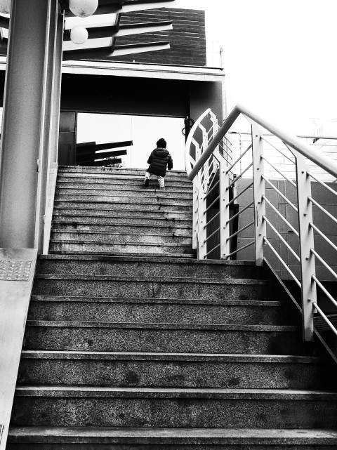 3~4쯤 된 어린아이가 계단 밑에서 끝까지 씩씩하게 올라가는 모습