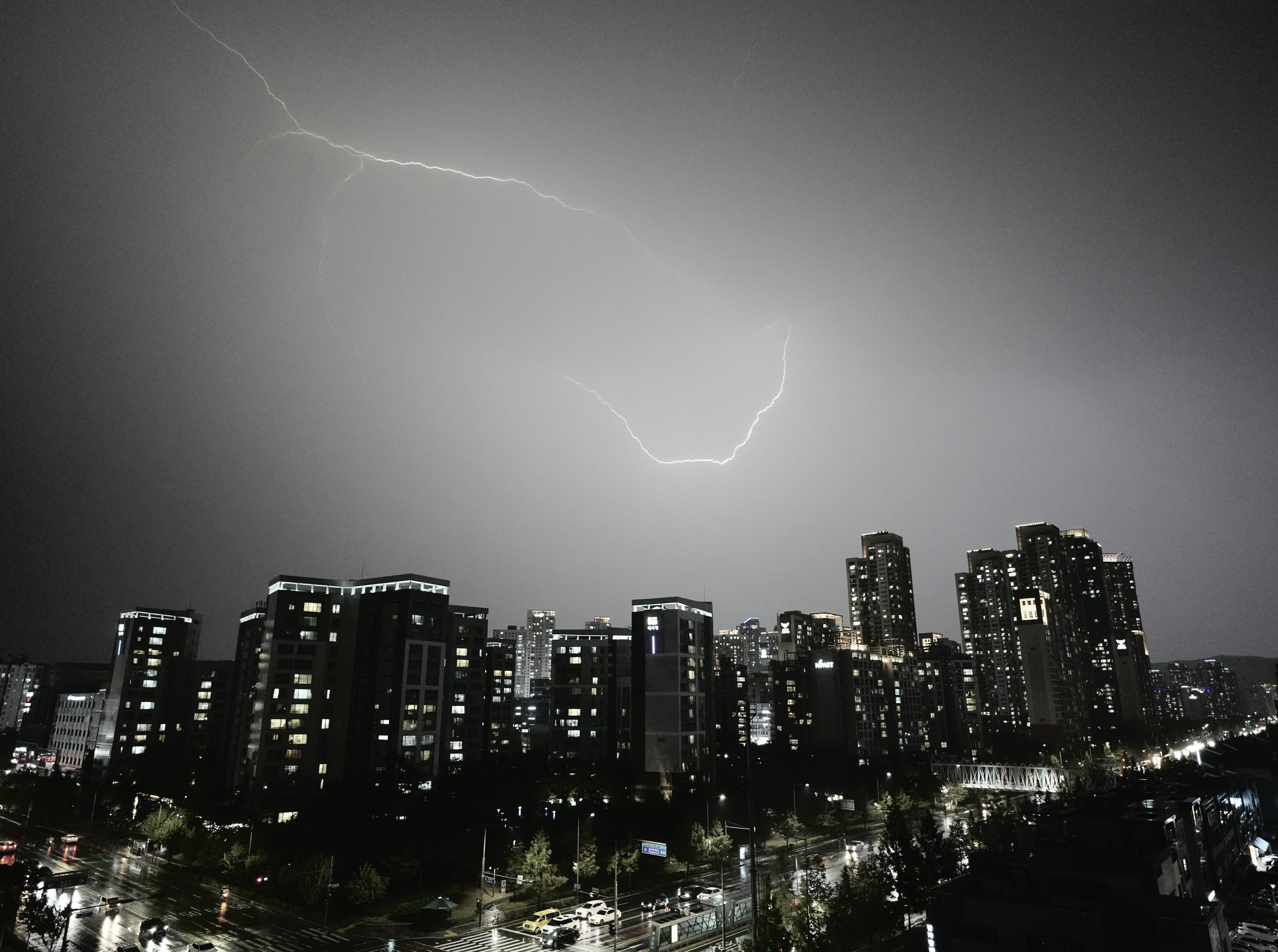 집근처에 폭우와 번개가 치는 순간을 촬영했습니다.
