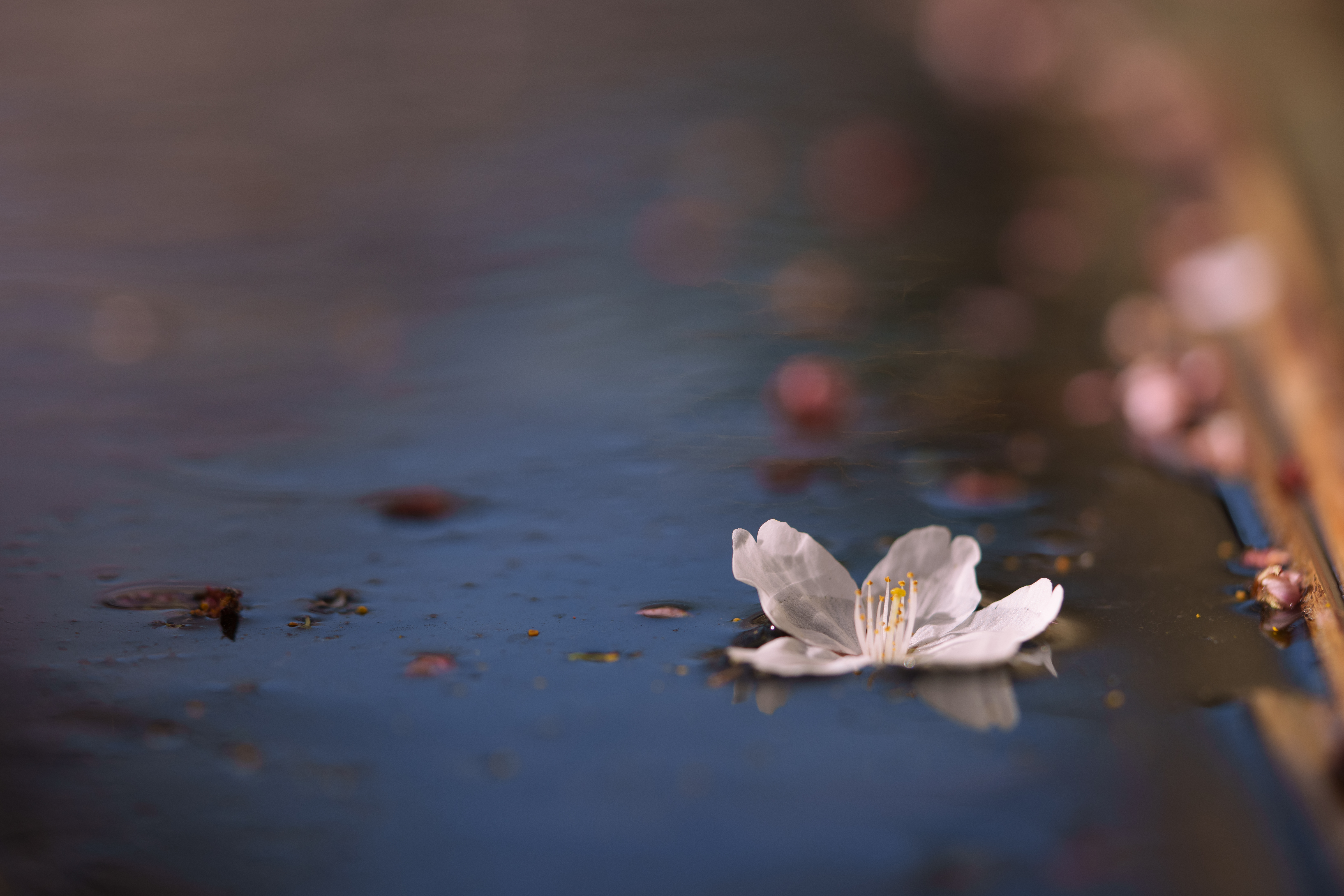 아직은 겨울의 기운이 남아있는 시점에 봄이 피어나기 시작하는 모습을 표현해보고자 연못에 떨어진 한송이의 벚꽃을 마크로렌즈 로우앵글로 담아보았습니다.