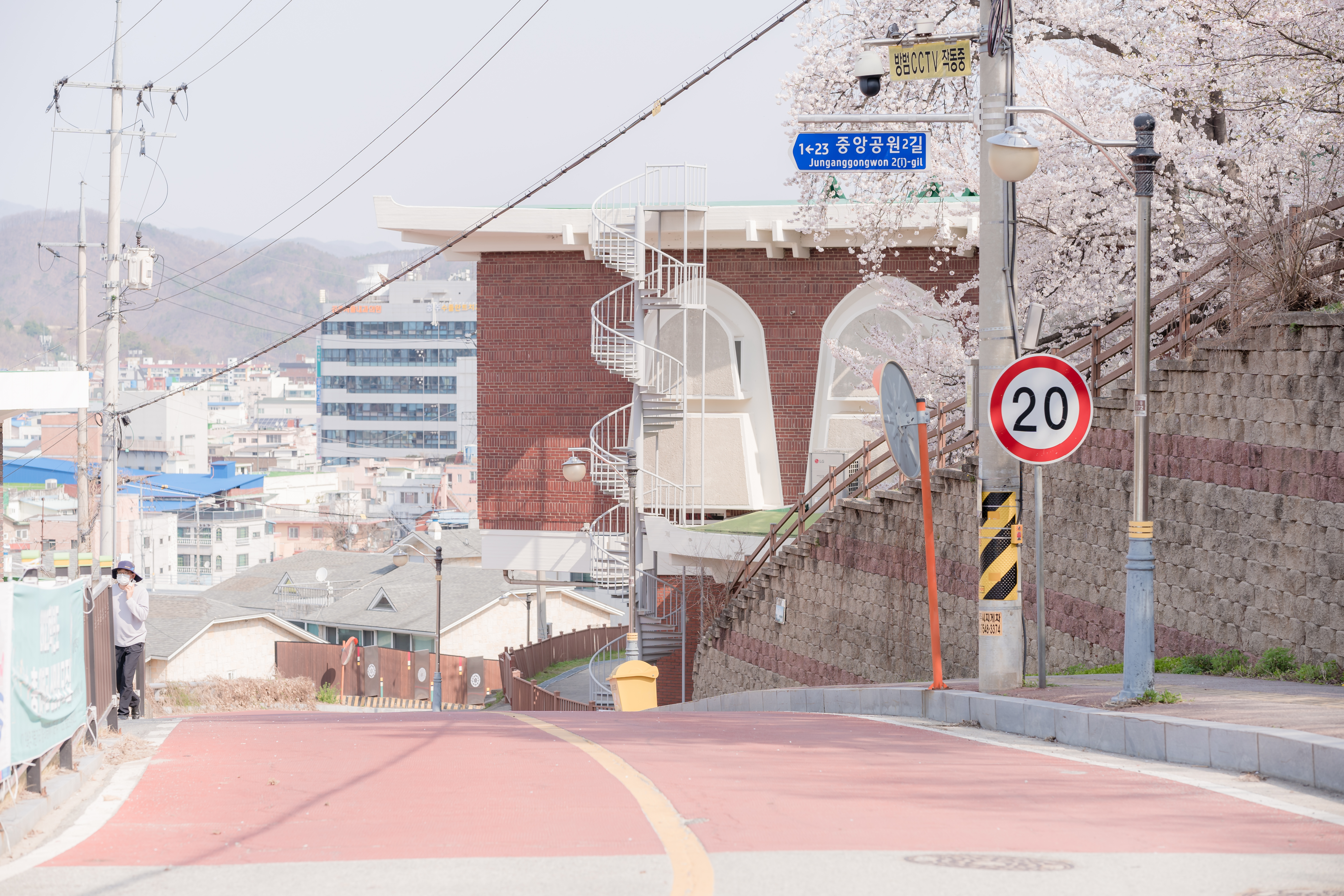 화사한 분홍빛의 도로와 흐드러지게 핀 4월의 벚꽃이 참 아름다웠습니다.