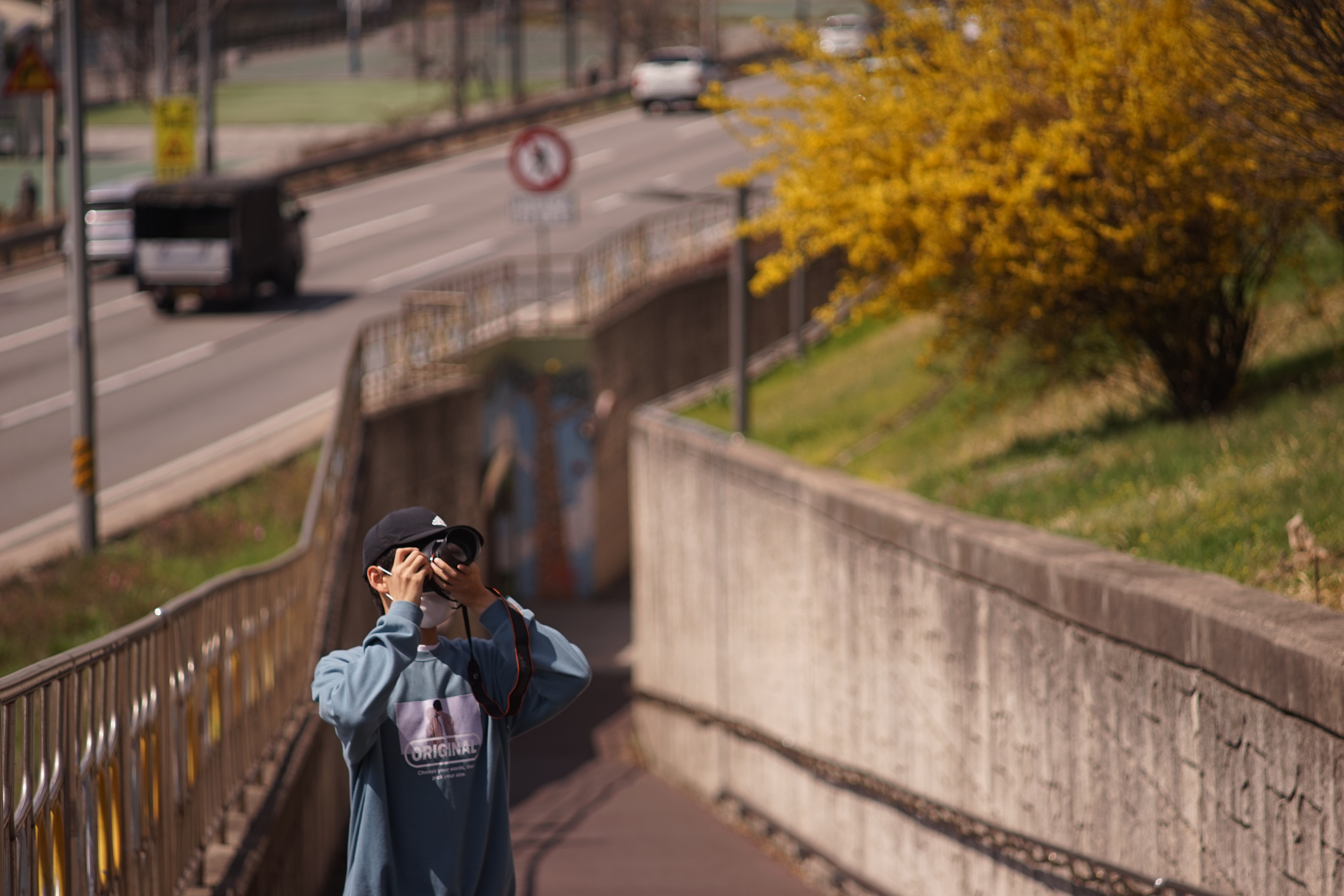 벚꽃을 담으려 카메라를 조작하는 친구를 담아보았습니다