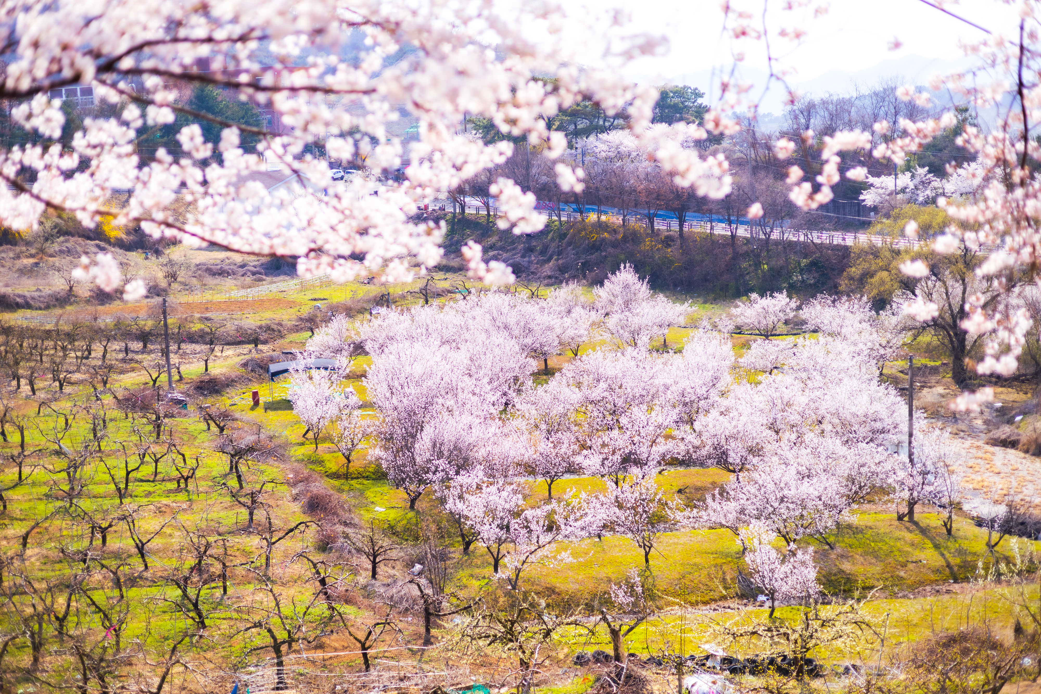 학교 앞에 벚꽃나무가 이쁘게 피어있네요