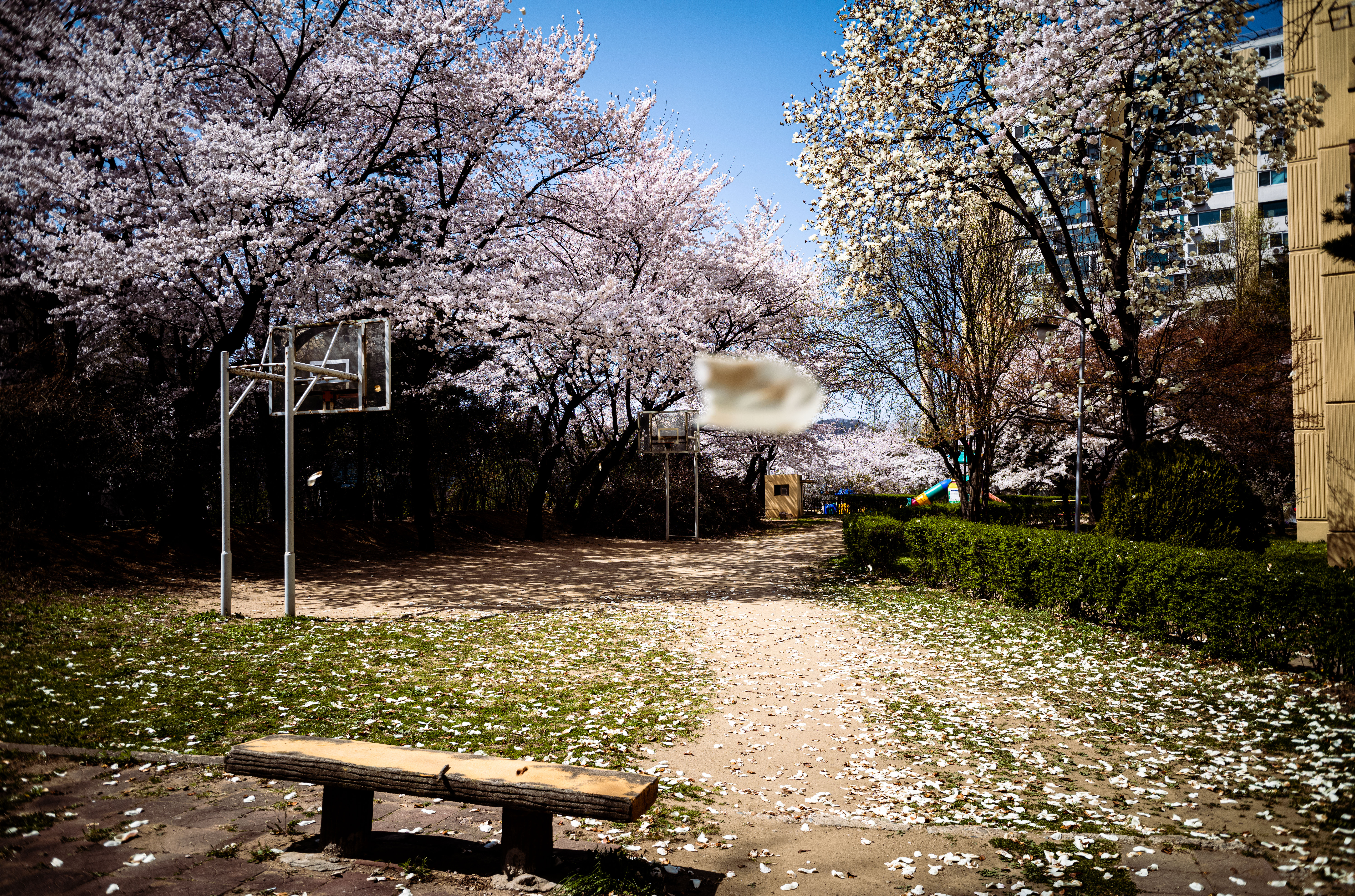 집옆 공터위로 떨어지던 꽃잎의 순간.