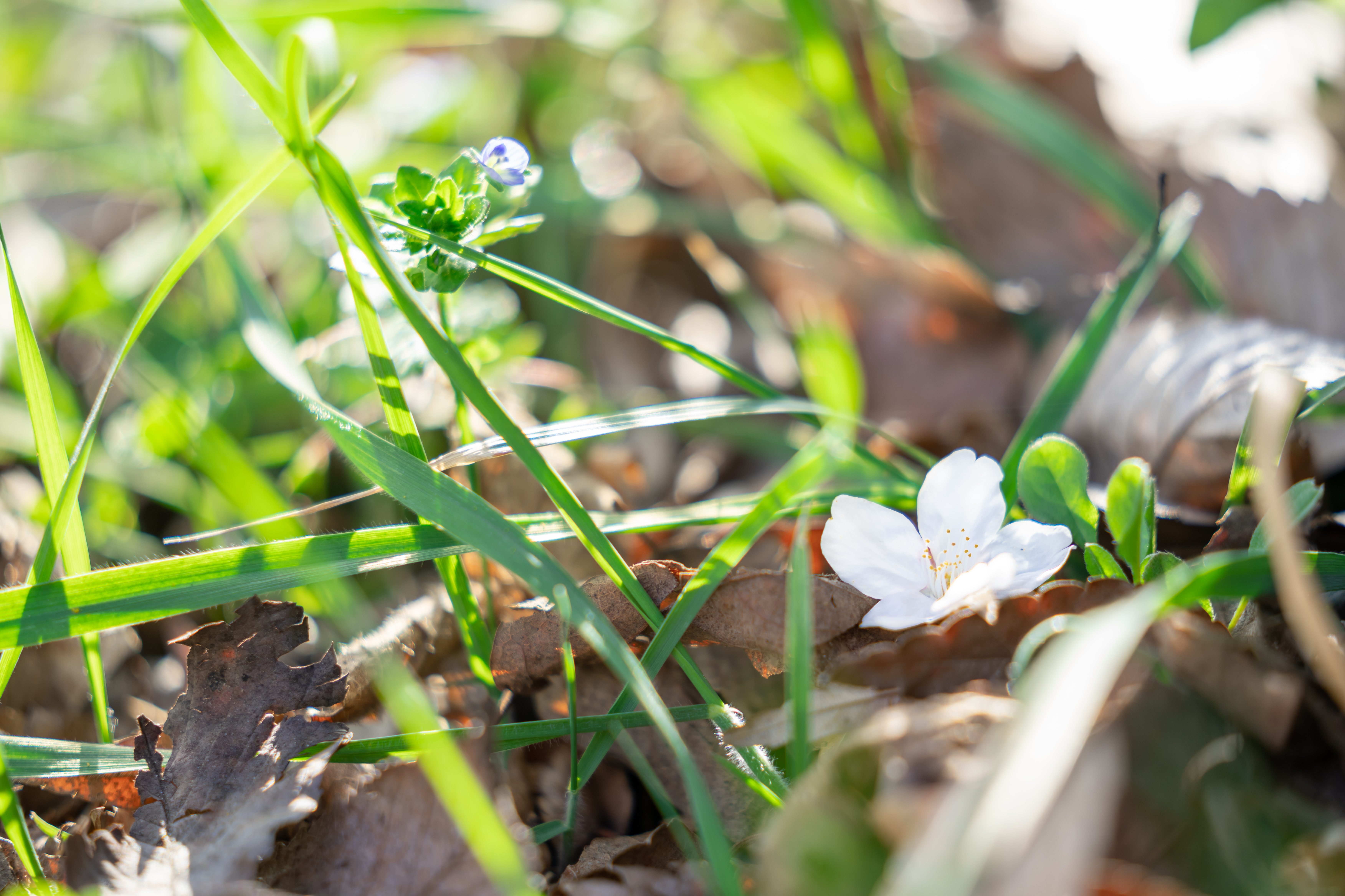 봄을 맞이하여 풀잎이 올라오고 그 틈에 떨어진 벚꽃을 만났다. 나무에 잔뜩 있는 벚꽃보다 초록색 풀들 사이에 숨어있는 벚꽃이 비록 무리에서는 떨어졌으나 더 아름답고 빛났다