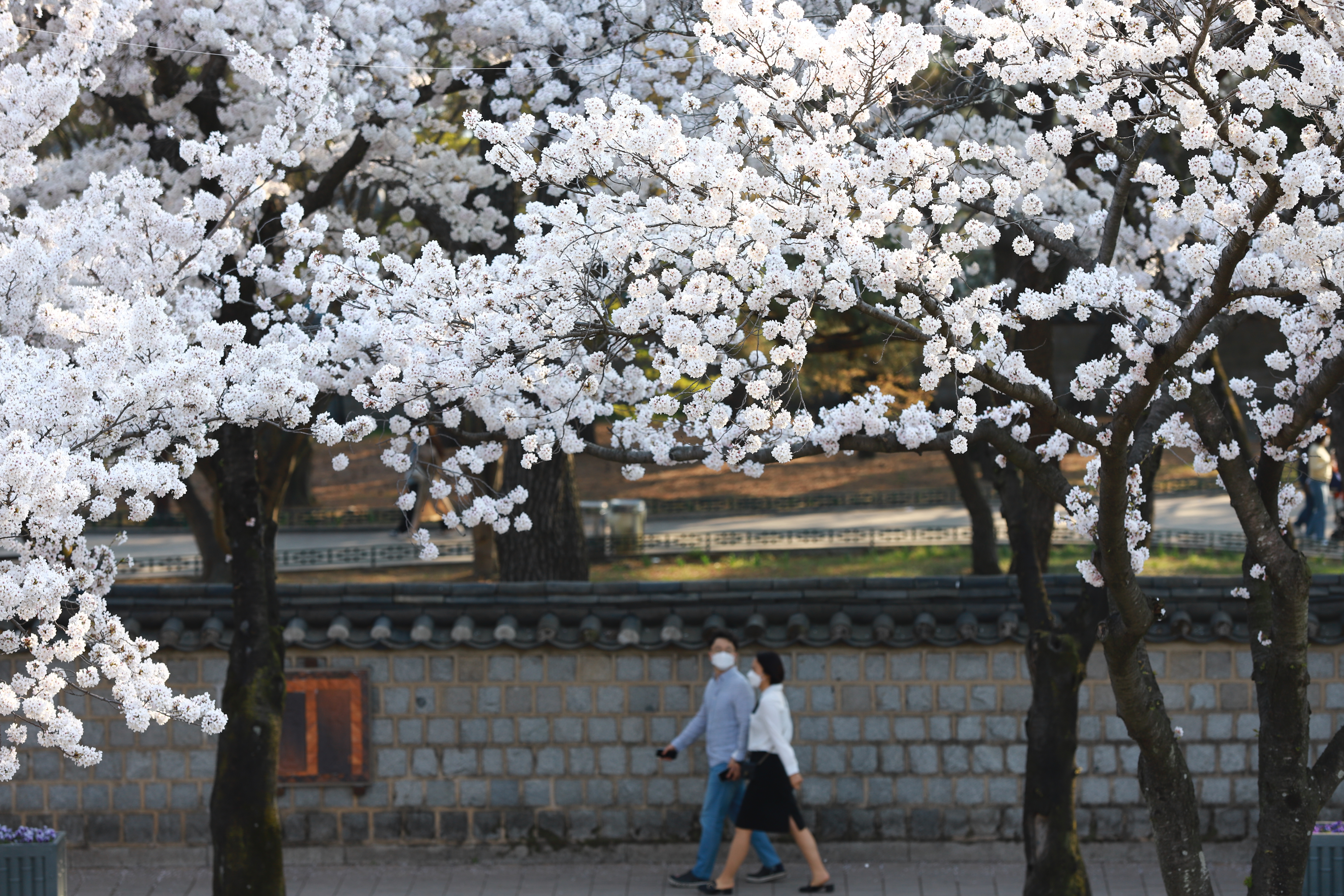 벚꽃과 돌담이 유난히 잘 어울리는 대릉원 돌담길