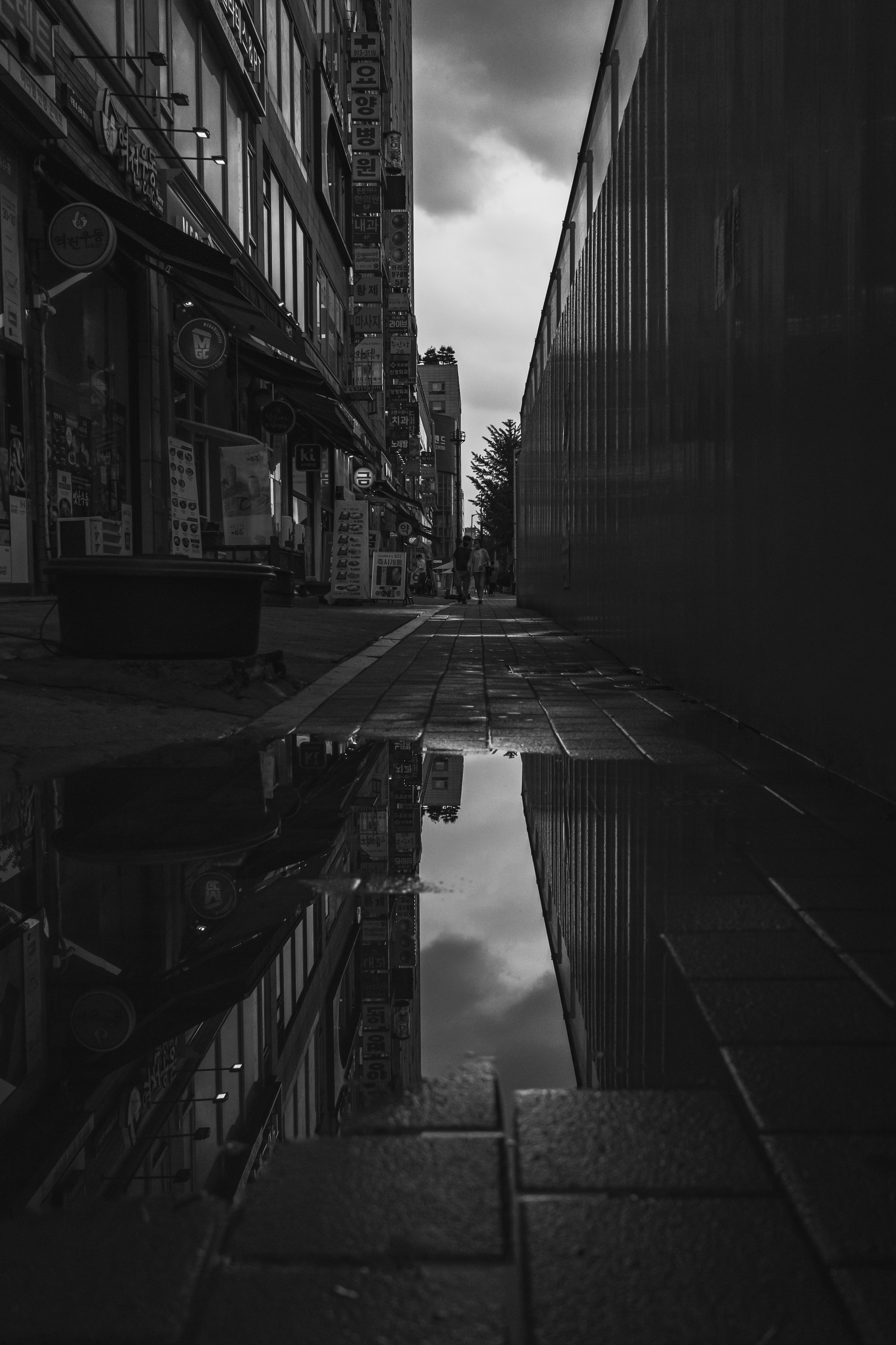 비온 뒤 고여있는 물웅덩이에 비친 하늘이 마치 멀티버스로 이어진듯한 느낌