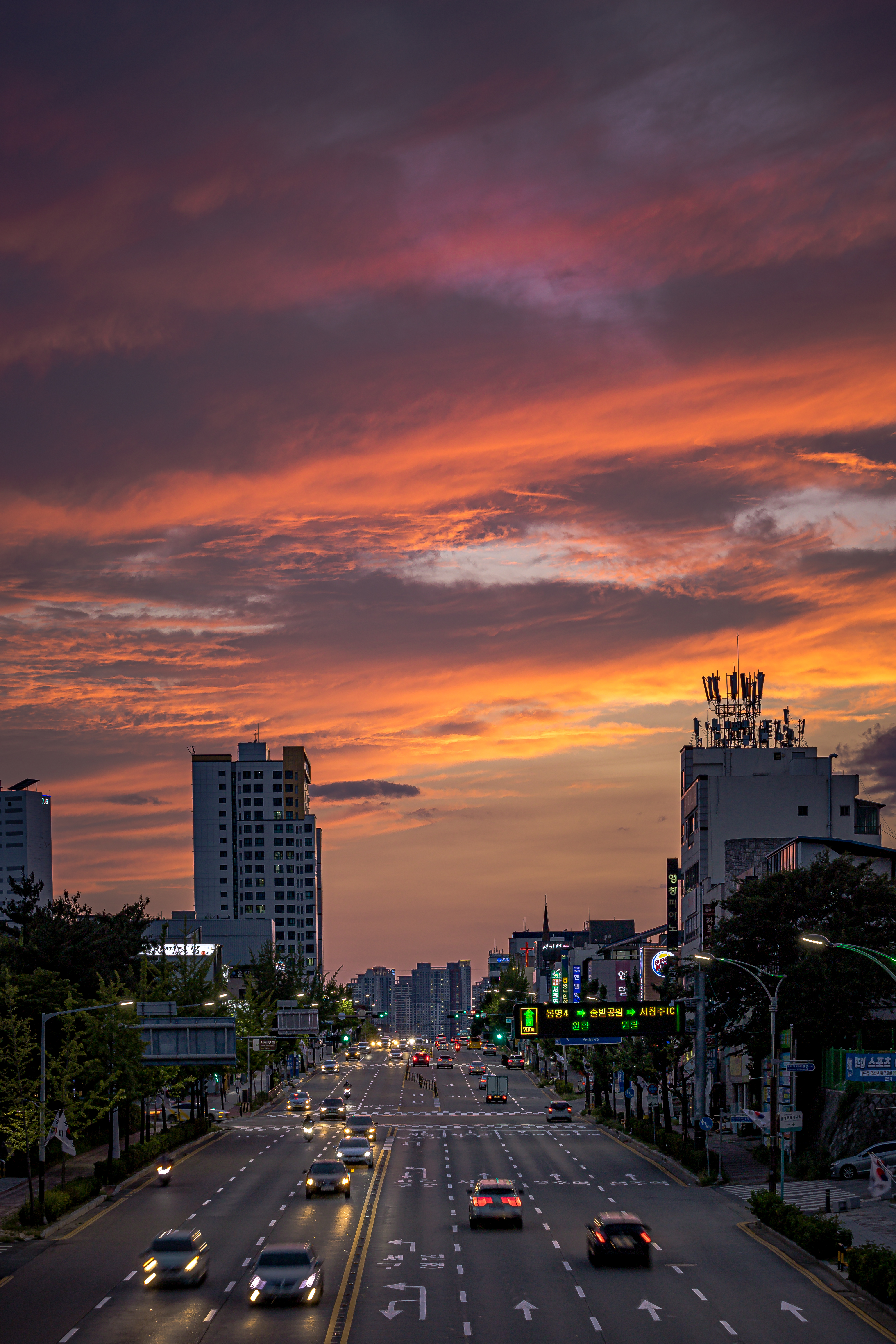퇴근길을 물들인 노을