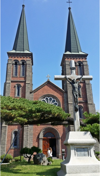 화창한 여름 오후 평일에 조용하고 아담한 겨산 성당 입구에요