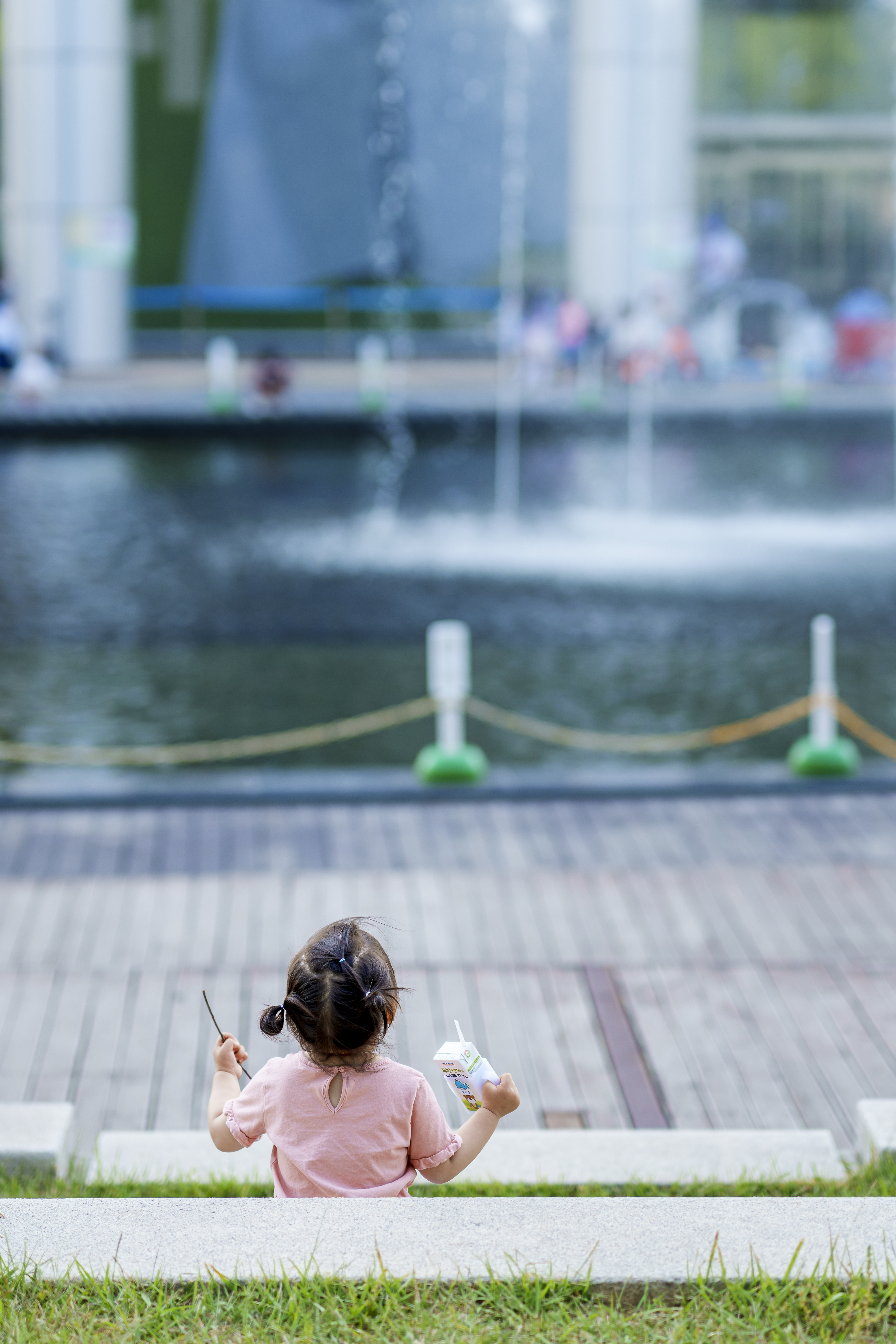 주말마다 음악 분수 앞에서 나뭇가지를 휘적이는
