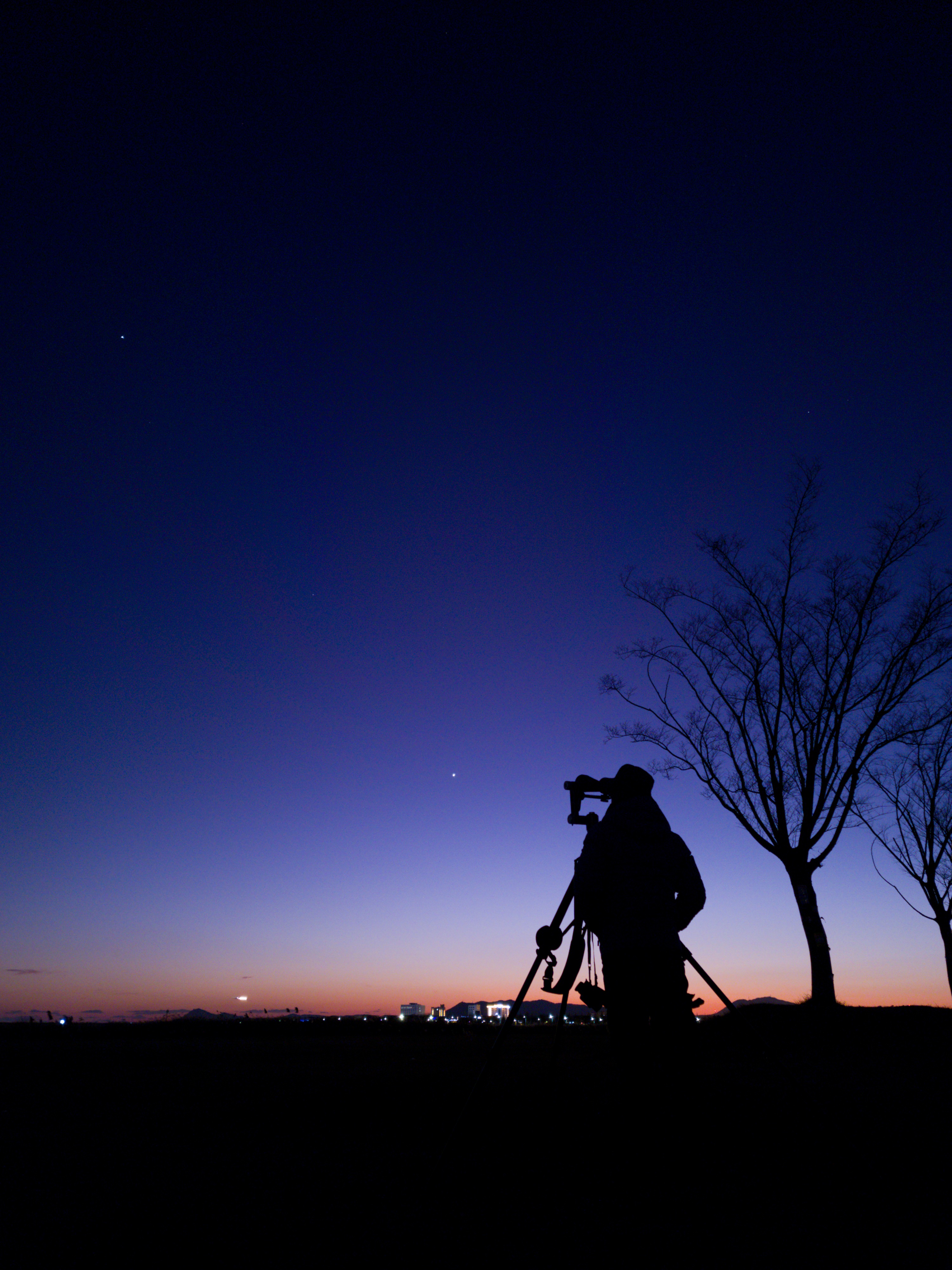 2021년 12월, 레너드(Leonard) 혜성을 만나기 위해 제가 좋아하는 공원에 가서 쌍안경으로 관측했습니다.