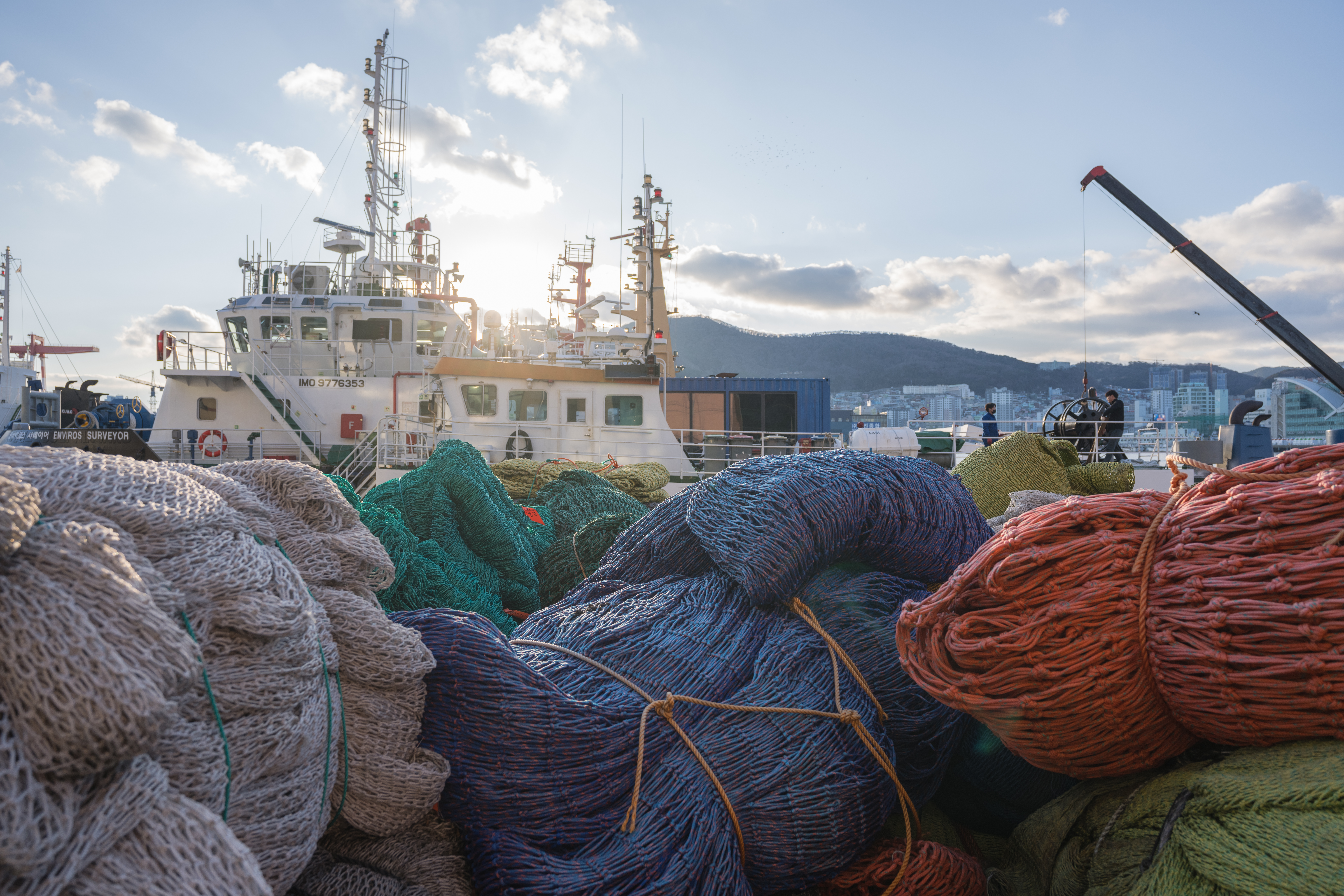 일몰시간, 부산 영도다리 부근 선착장의 그물들을 담아 보았습니다.