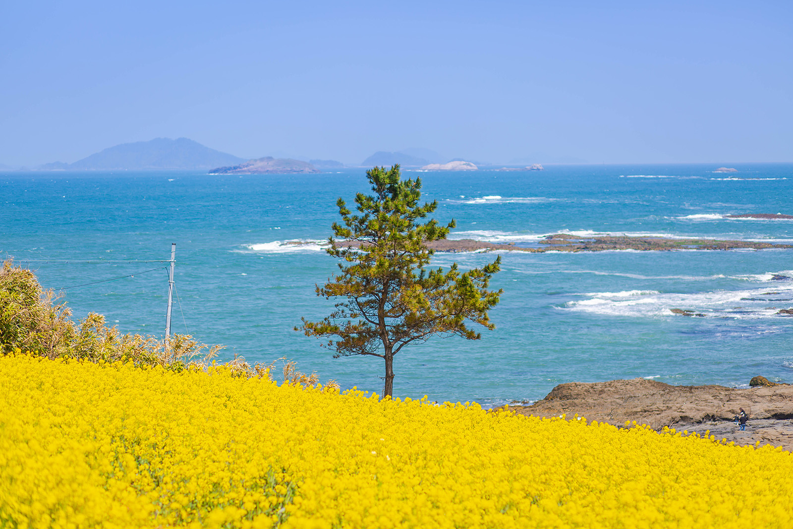 유채꽃이 만발한 수성당에서 노란 유채와 파란 바다가 대비되는 풍경이 예뻐서 담아봤습니다.