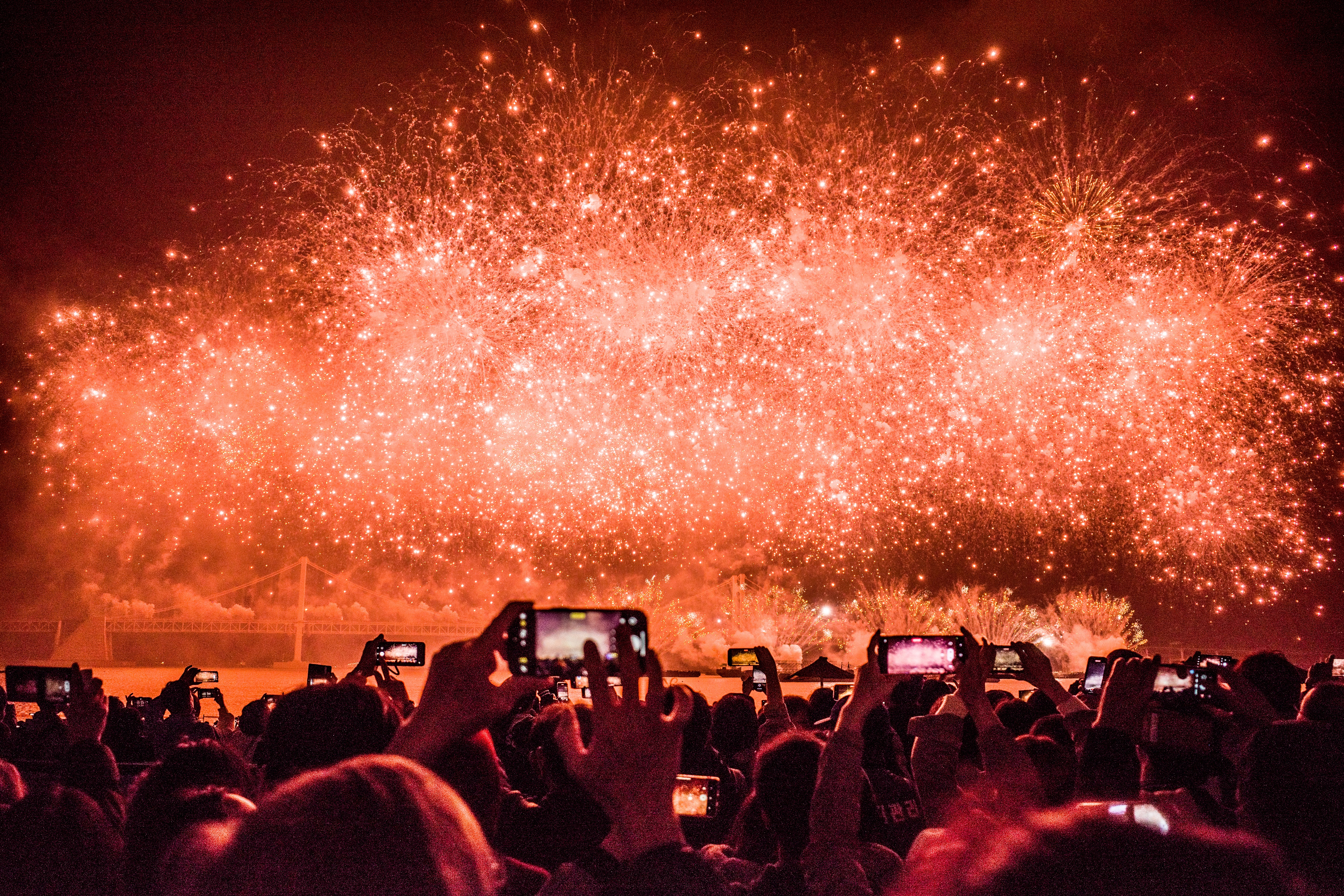 봄날의 불꽃축제에 저마다의 행복을 담는다.