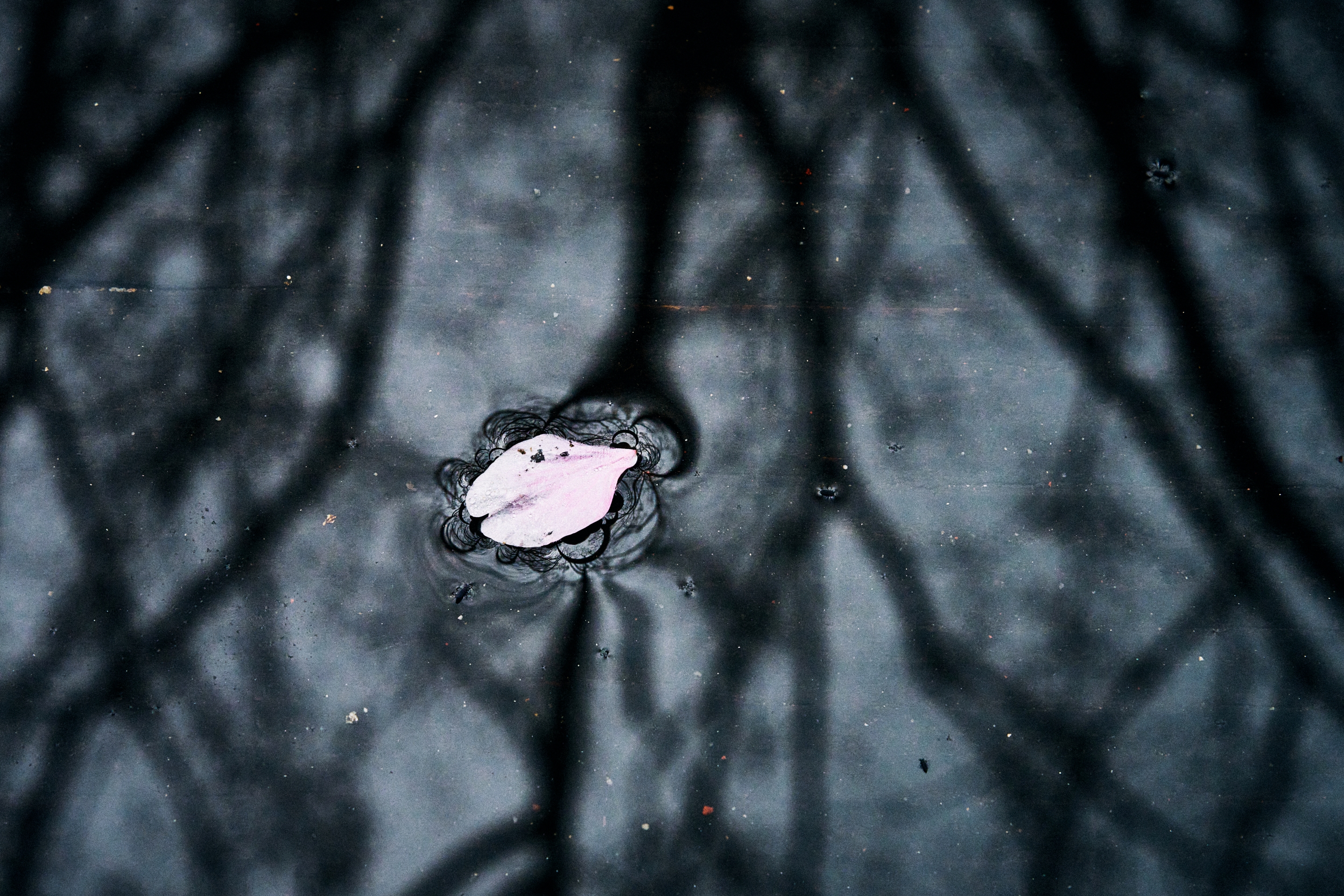 봄에 피는 벚꽃잎과 봄비를 한 프레임에 표현했습니다. 떨어진 나무를 반영으로 비춰 얼마전까지 나무에 있던 벚꽃잎이었다는 것을 보여주고자 했습니다.