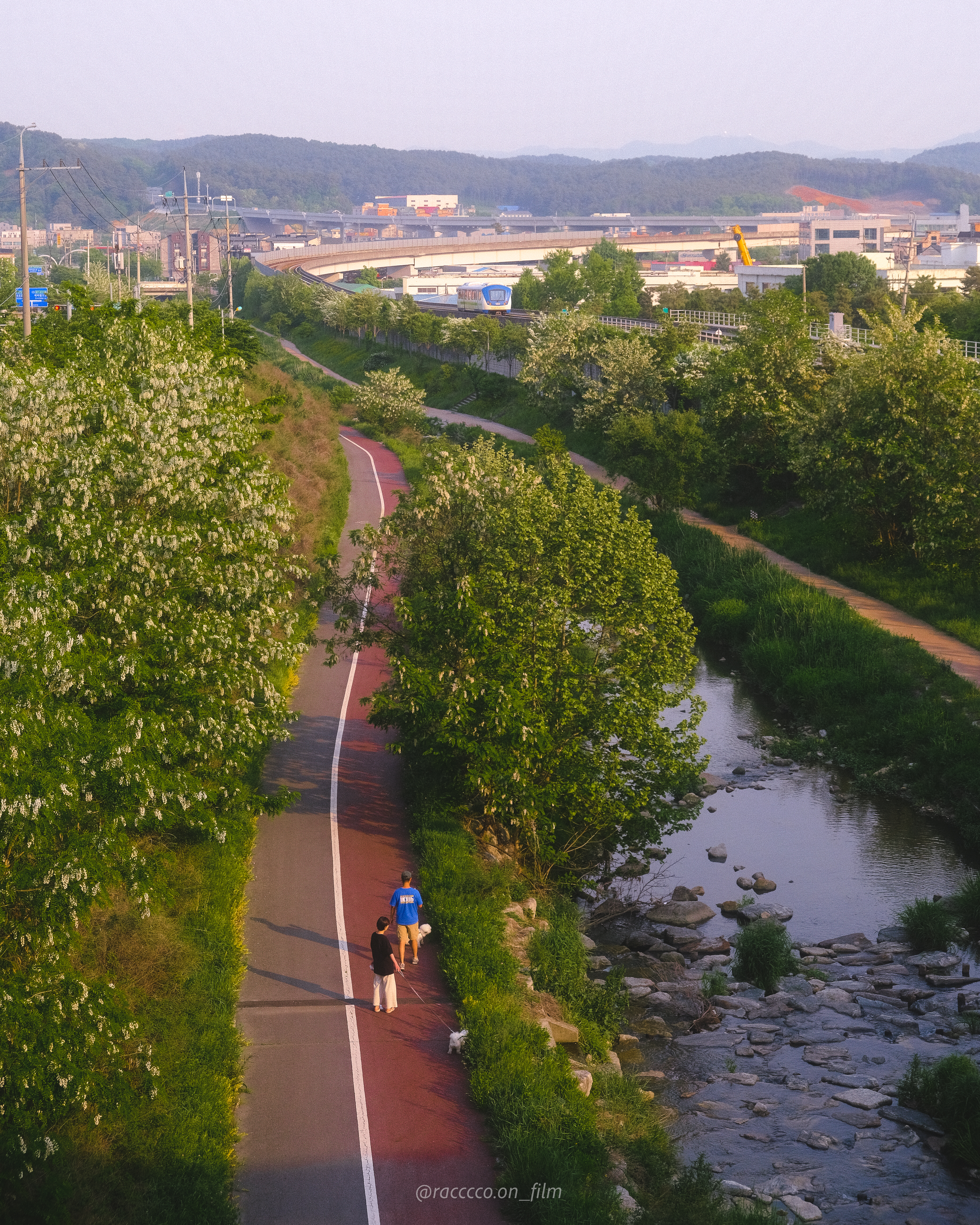 용인 경전철 종착역 (전대.에버랜드역)에서 찍은 경안천 산책길 풍경사진.