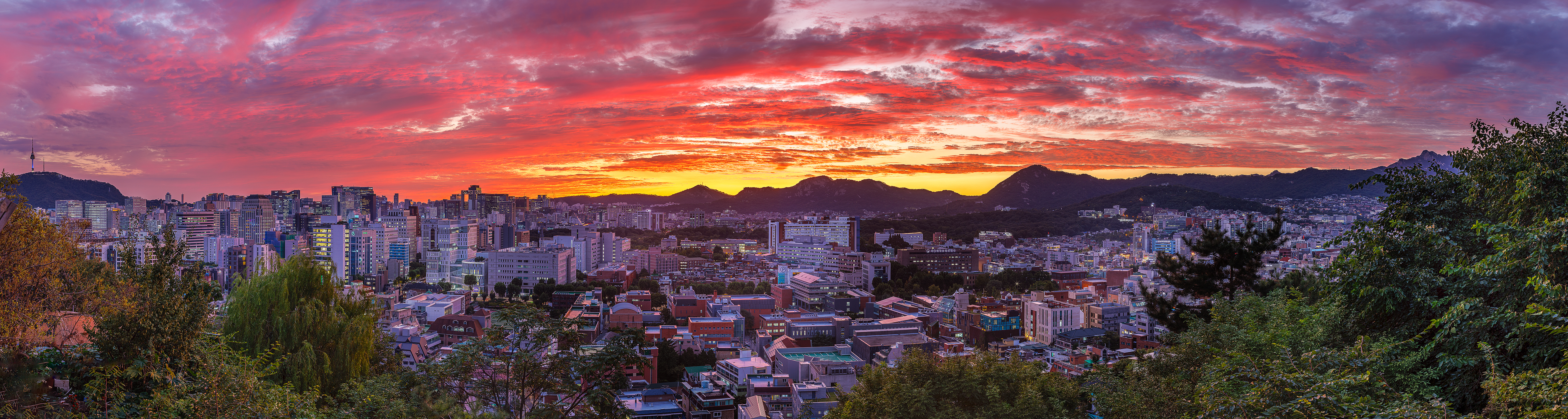 아침 일기예보를 보고, 저녁에는 일몰이 멋질걸로 예상되어, 일몰을 찍기 좋은 장소를 찾아 낙산공원에 갔습니다. 해가지고 10여분 후, 하늘의 많은 구름에 일몰빛이 드리우고 불타는 서울 하늘을 만날수 있었습니다. 넓게 나타난 붉은 하늘을 담기위해 파노라마로 촬영하였습니다.