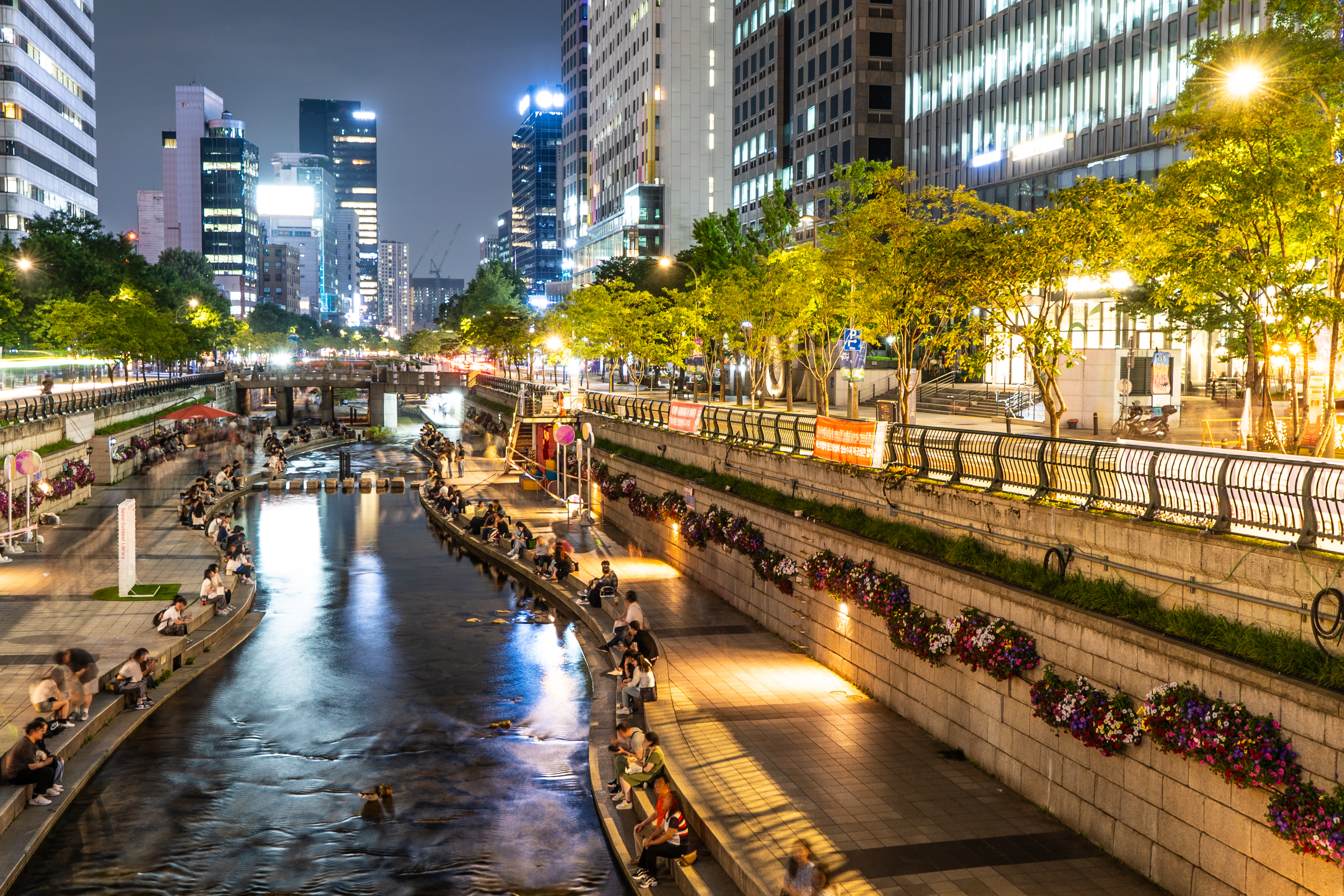 높은 빌딩은 산이오 하천은 강줄기 부럽지 아니하니 천 에 둘러 여유를 즐기는 자들이 신선처럼 보인다.