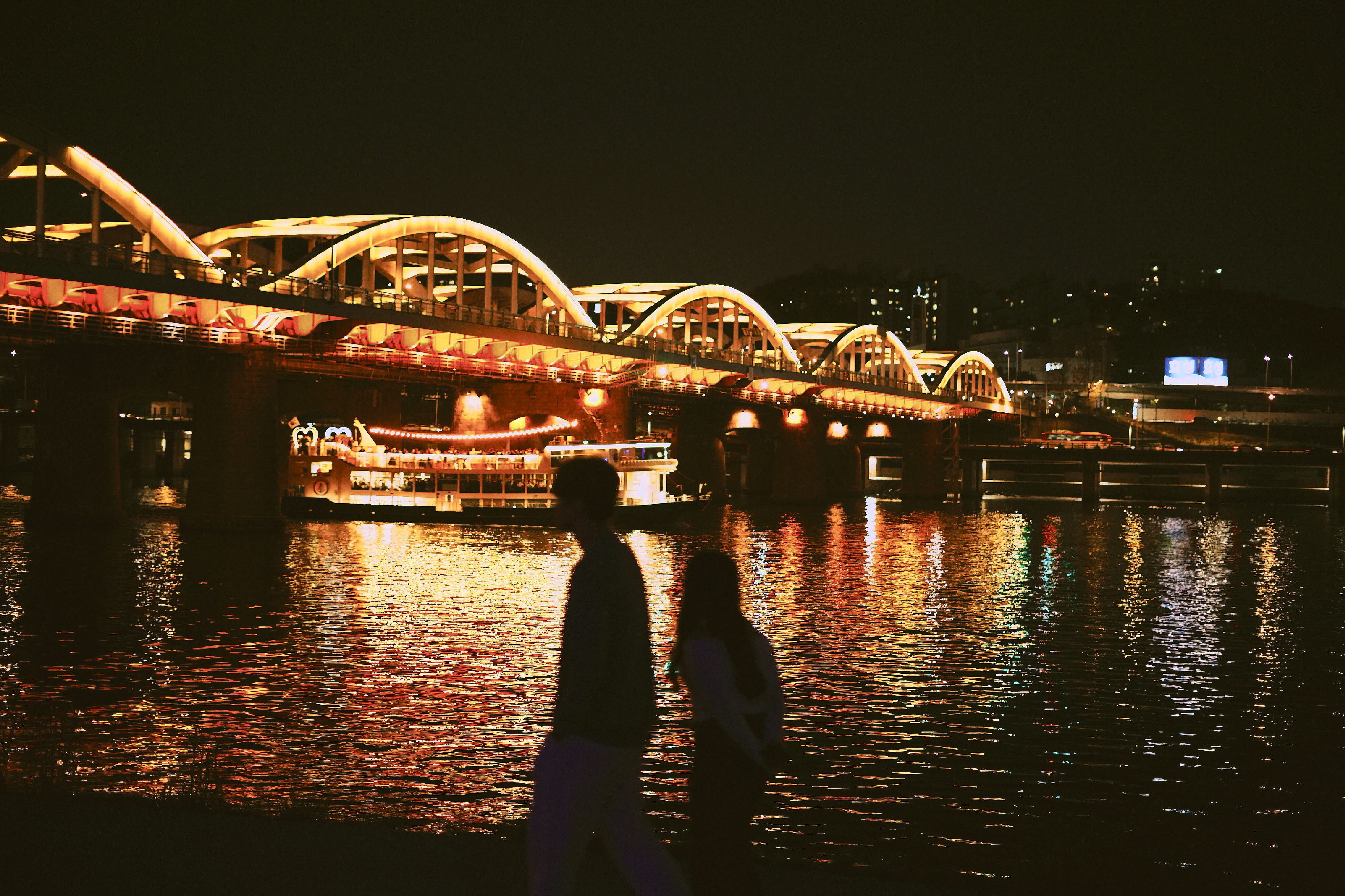 밤이 드리워진 한강은 이 도시만이 가진 또다른 낭만을 보여줍니다 어둠을 채우는 많은 불빛들과 시끄럽지 않은 소리들, 풀냄새, 얕은 물비린내는 초여름의 한강을 더욱 특별하게 만들어 줍니다