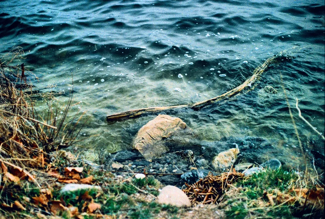 푸른 강변에 홀로있는 나무 하나