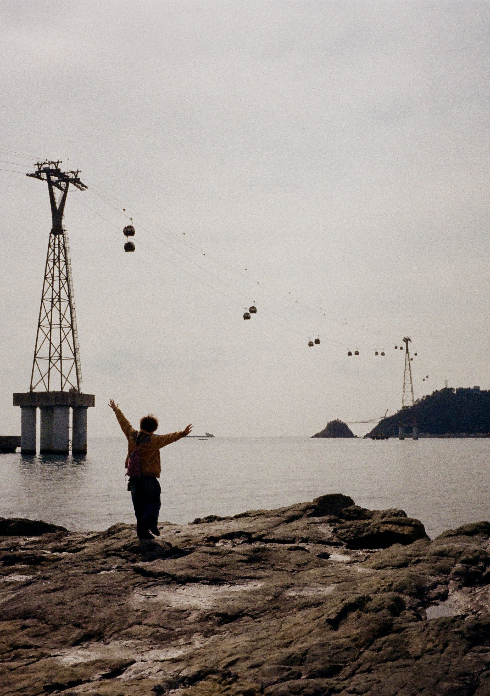 그녀는 팔을 벌려 추억을 담는다.