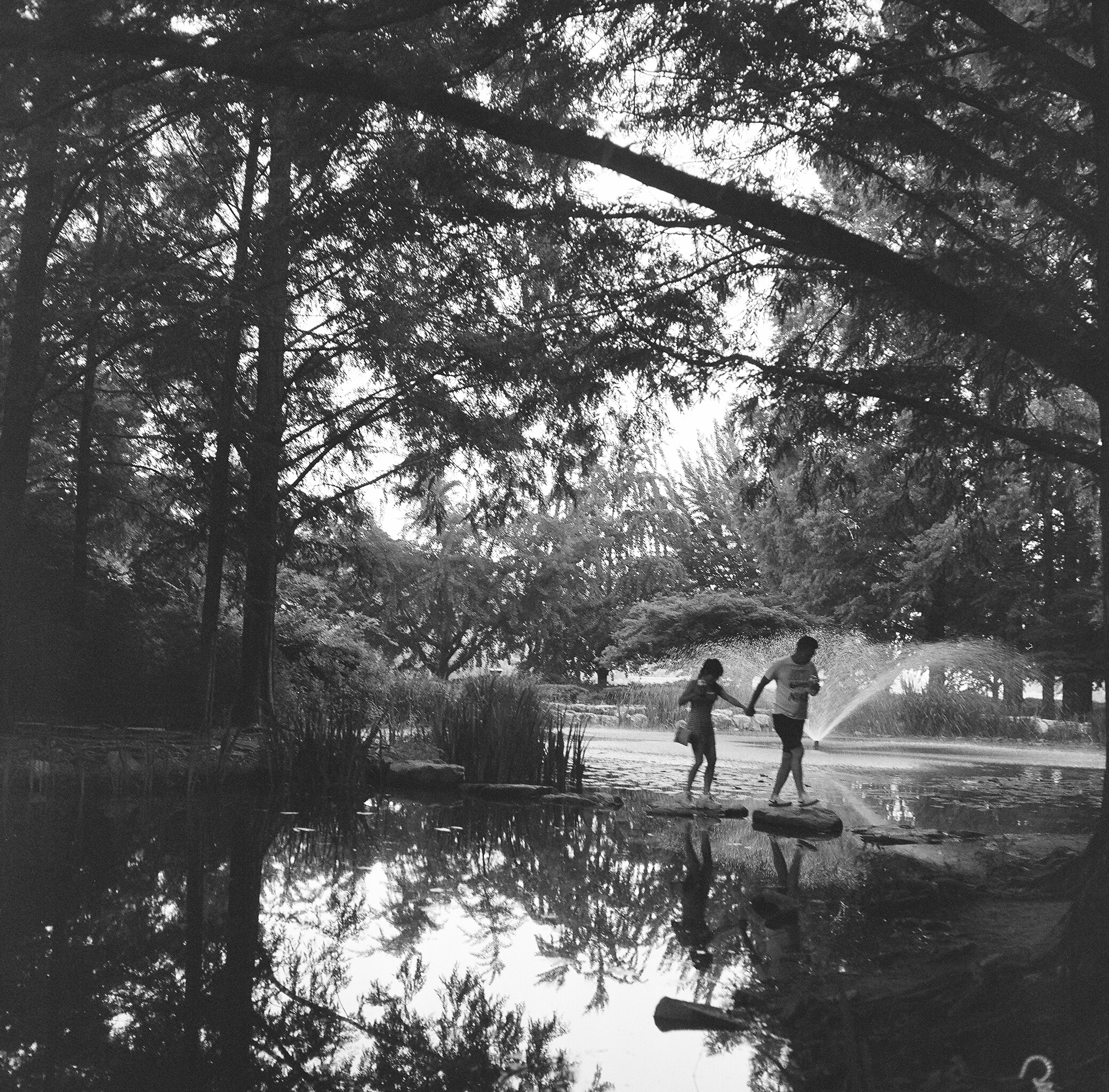 이 사진은 경북 안동 낙강물길공원에서 야시카 mat124g라는 중형 포맷의 tlr카메라로 유통기한이 지난 코닥 tx400 흑백필름을 사용하여 촬영하였습니다! 손을 꼭 잡고 돌다리를 건너는 두 사람의 모습이 인상적이어서 순간포착하여 촬영했습니다!