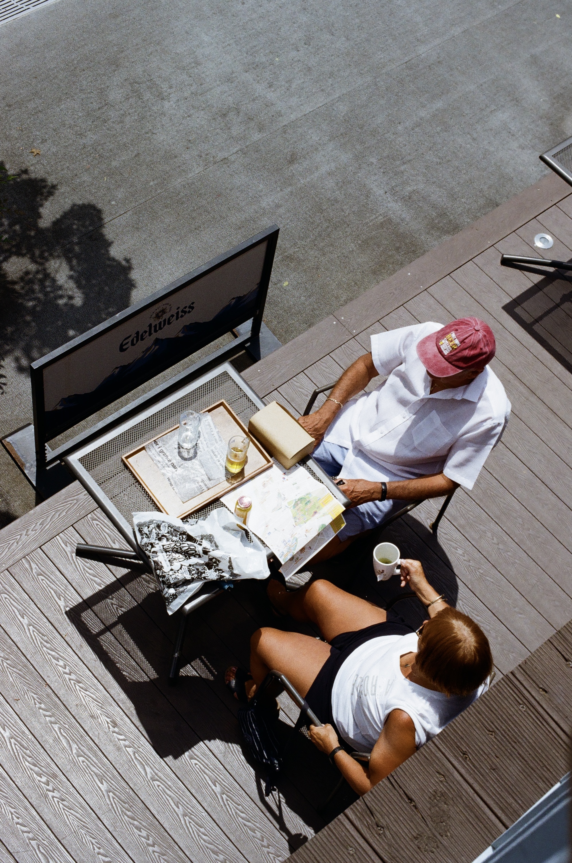 석촌호수의 작은 테라스, 따스한 햇살 아래 여유롭게 앉은 두 사람. 테이블 위에 놓인 지도와 음료 그리고 말없이 흐르는 시간이 그들의 관계와 여행의 리듬을 보여줍니다. 한국인들은 익숙한 곳이지만 여행자들에게는 새롭게 느껴지는 것 처럼 새로운 마음으로 여유와 따뜻한 하루의 공기를 포착하고자 했습니다. 니콘 FM2 코닥 골드