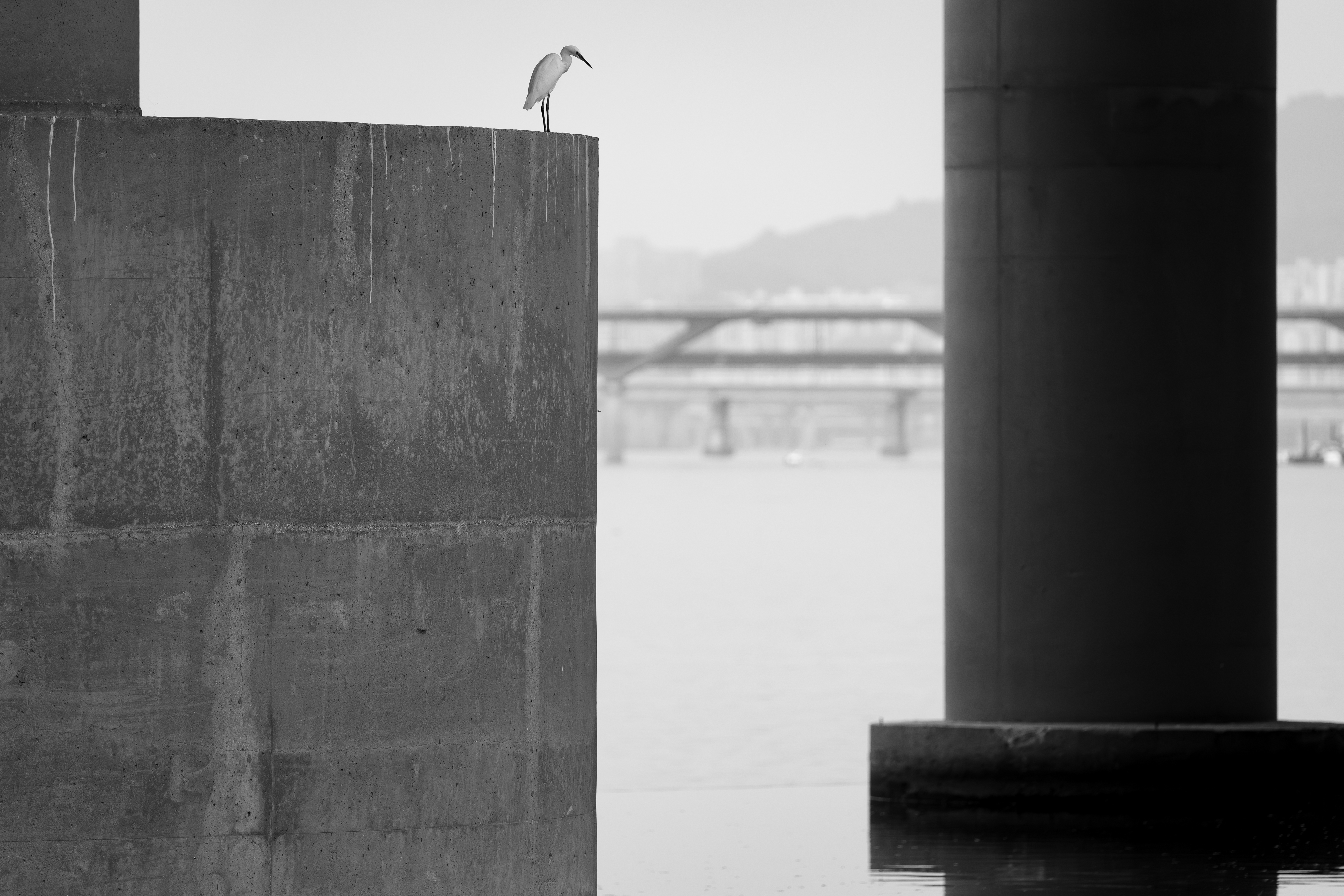 다리와 기둥과 물 그리고 새