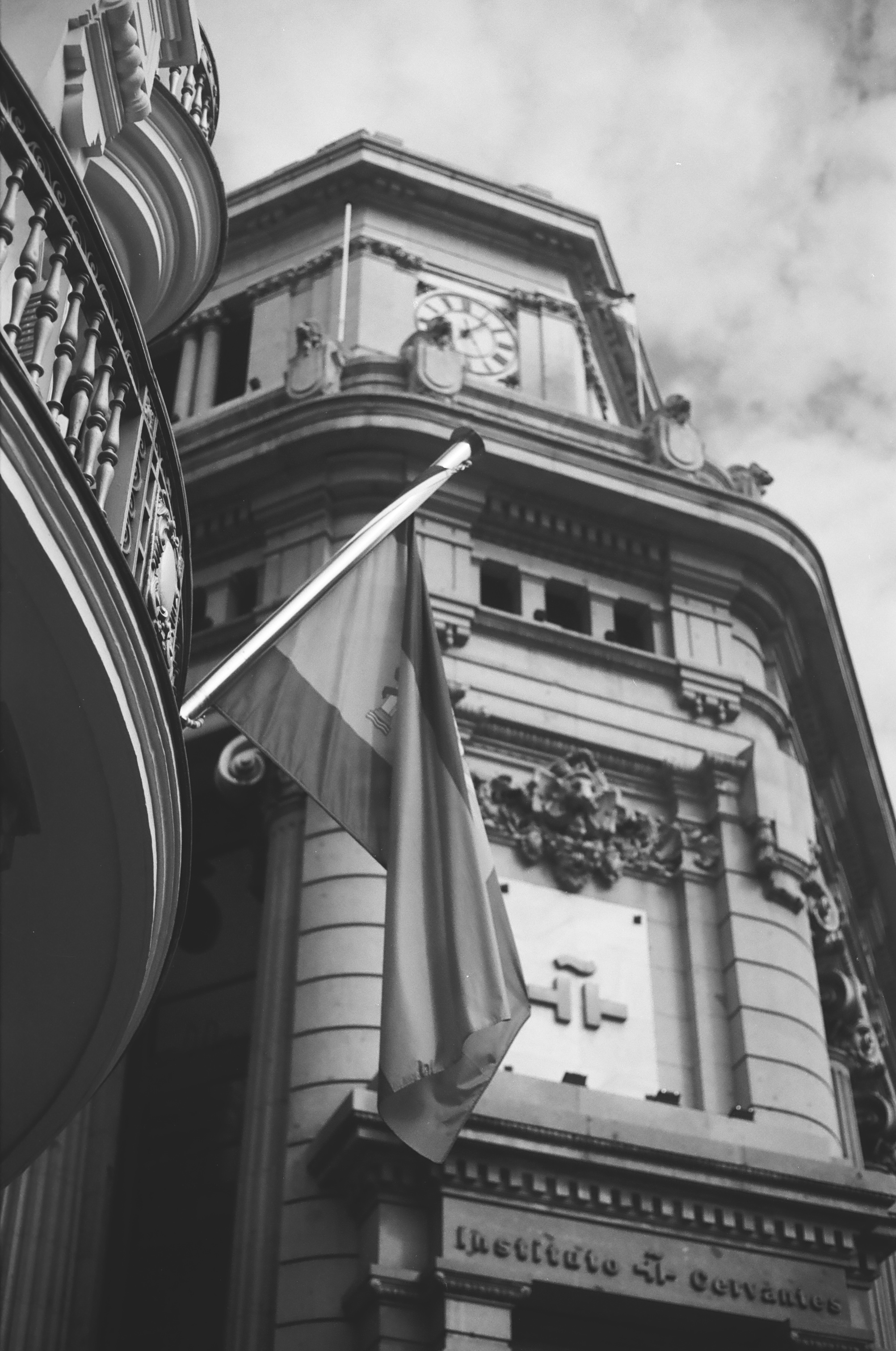 흐르는 시간을 지켜보는 시계탑 아래, 바람에 나부끼는 깃발이 도시의 숨결을 담는다.