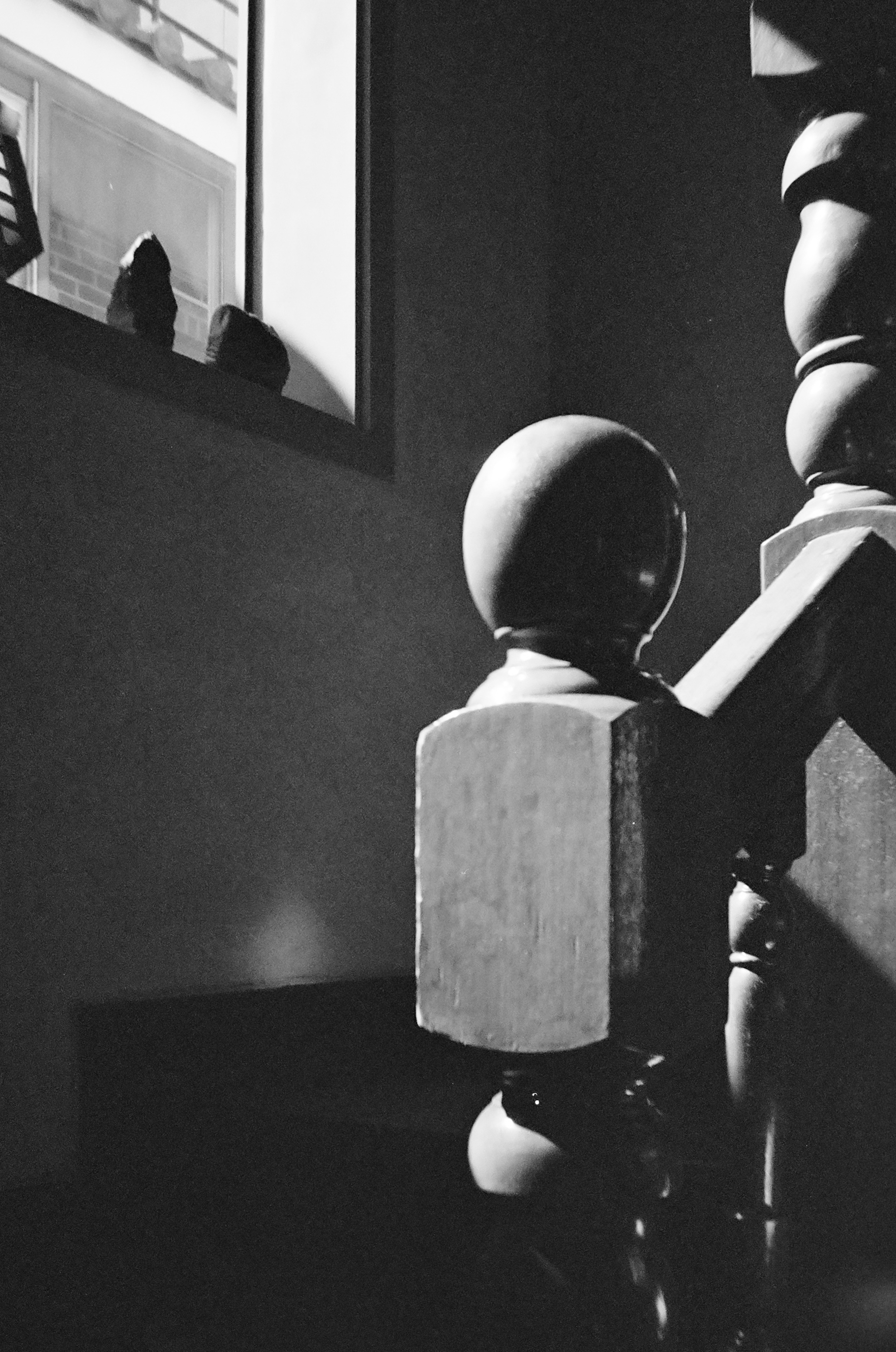 강남 한과와락 카페에서 빛 받은 계단 옆 난간