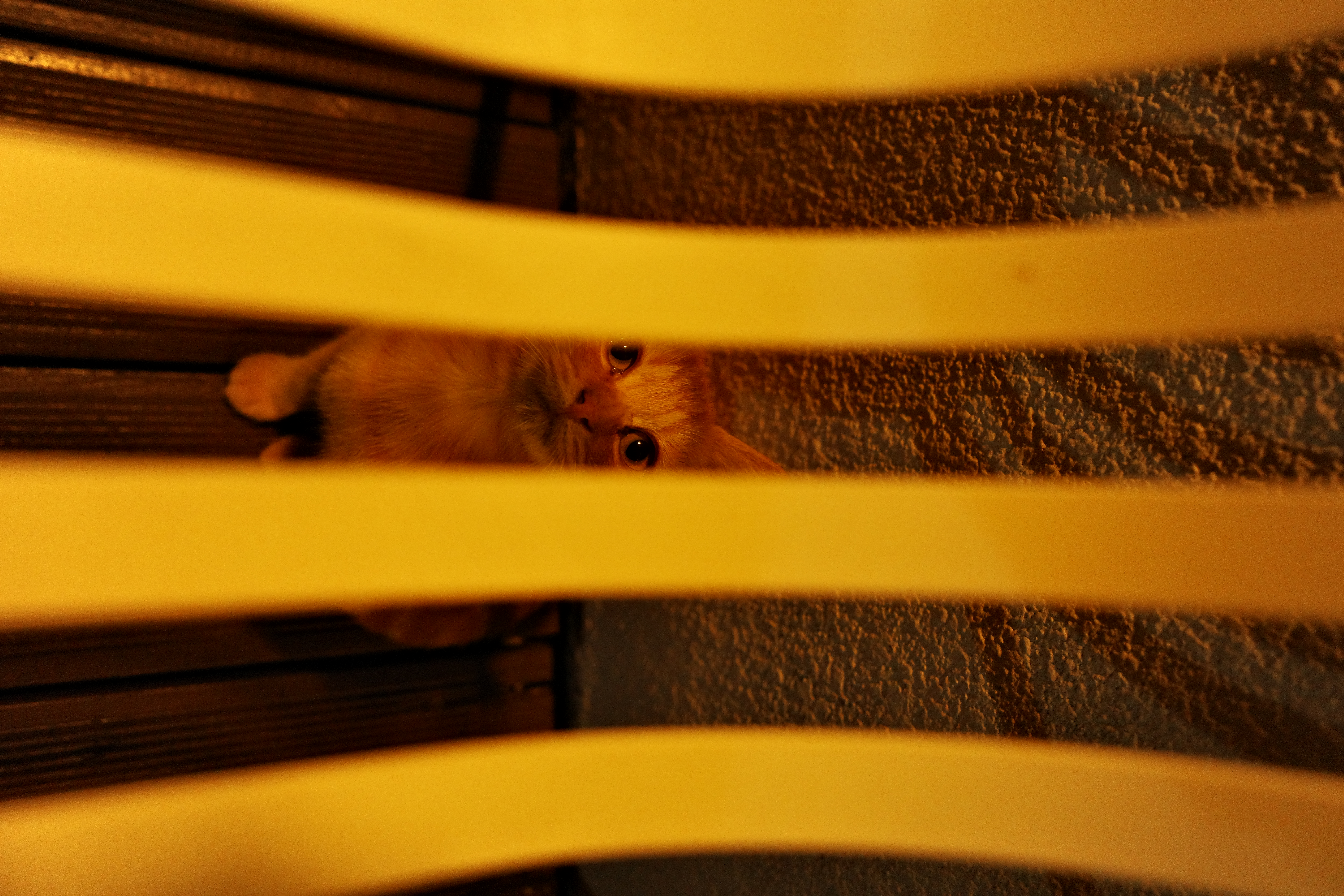 여행 중 묵었던 숙소 마당의 의자에 앉아 쉬고 있던 중 아래에서 작은 시선이 느껴졌어요. 툭툭— 소리가 나길래 내려다보니, 노란 조명 아래에서 아기 치즈 고양이가 저를 바라보고 있었습니다. 따뜻한 빛과 차가운 틈 사이, 호기심 어린 눈빛과 마주치자 하루의 피로가 녹아내렸어요. 그 순간의 온기와 분위기를 영원히 기억하고 싶습니다.