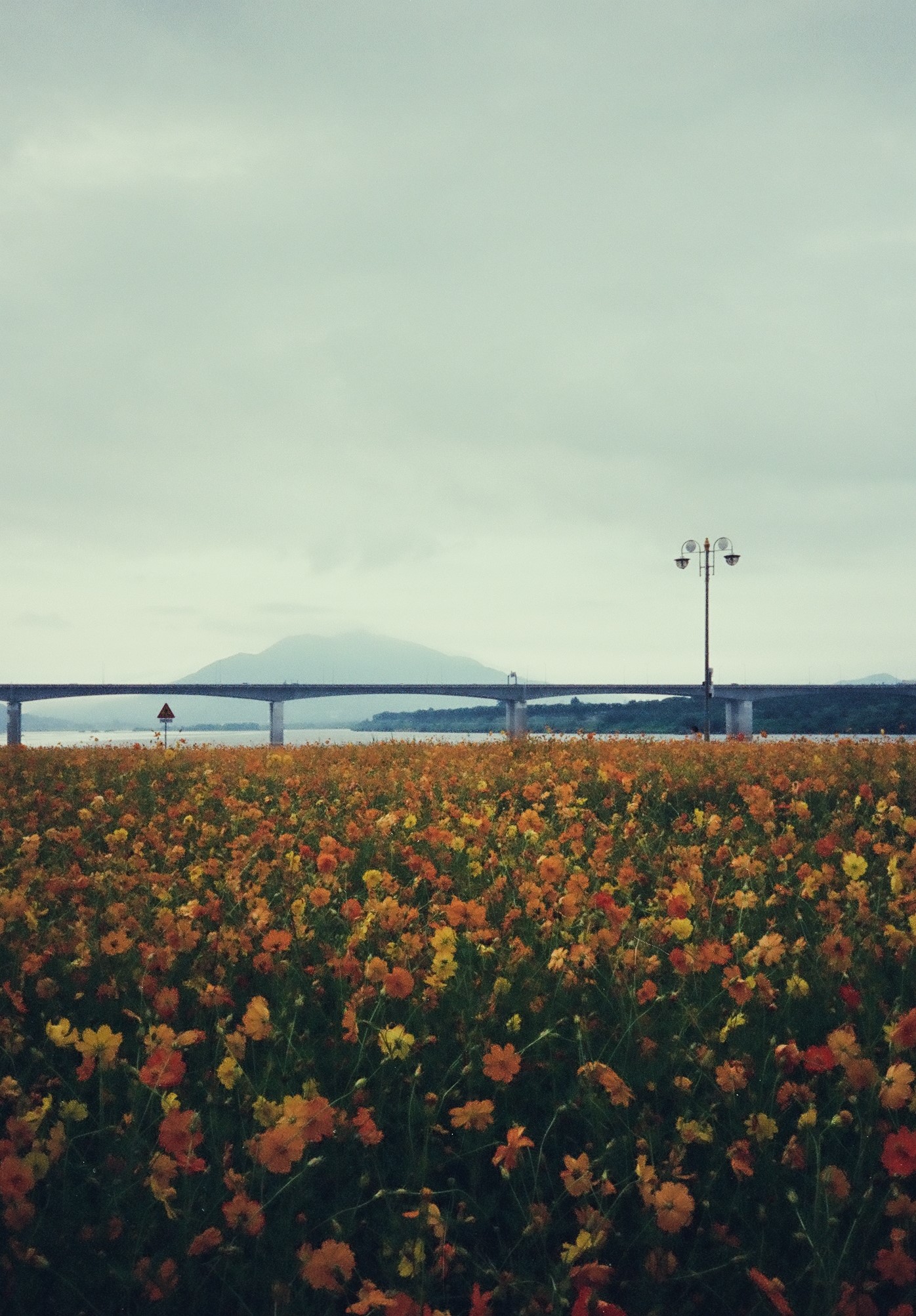 황화코스모스가 한강을 물들이고, 끝없이 펼쳐진 하늘이 그 빛을 완성한다. 펜탁스17에 담긴 프레드폴 250D 필름의 질감이 그 순간을 영화처럼 기록했다.