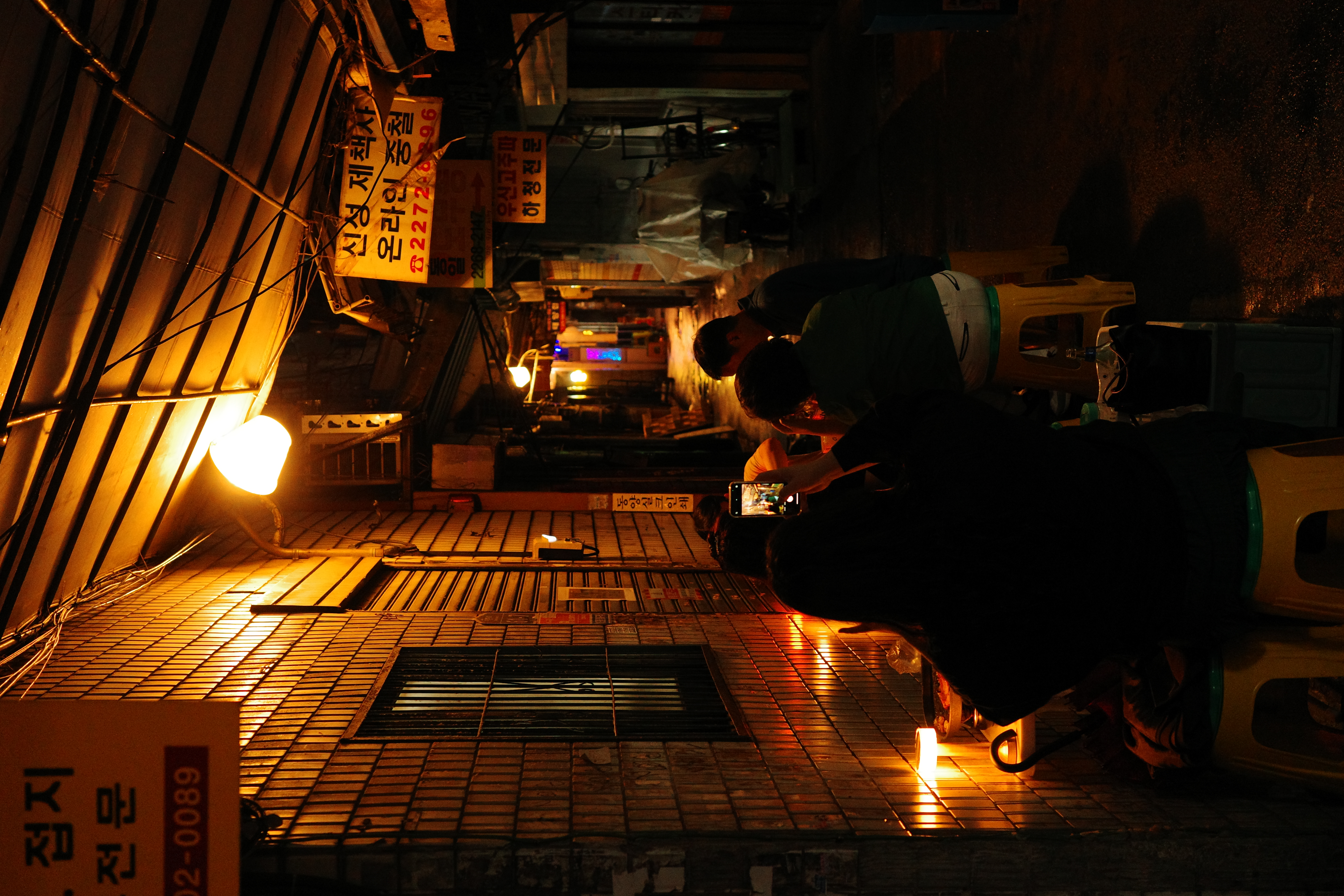 을지로의 어느 골목, 지나간 야장의 계절을 표현했습니다.