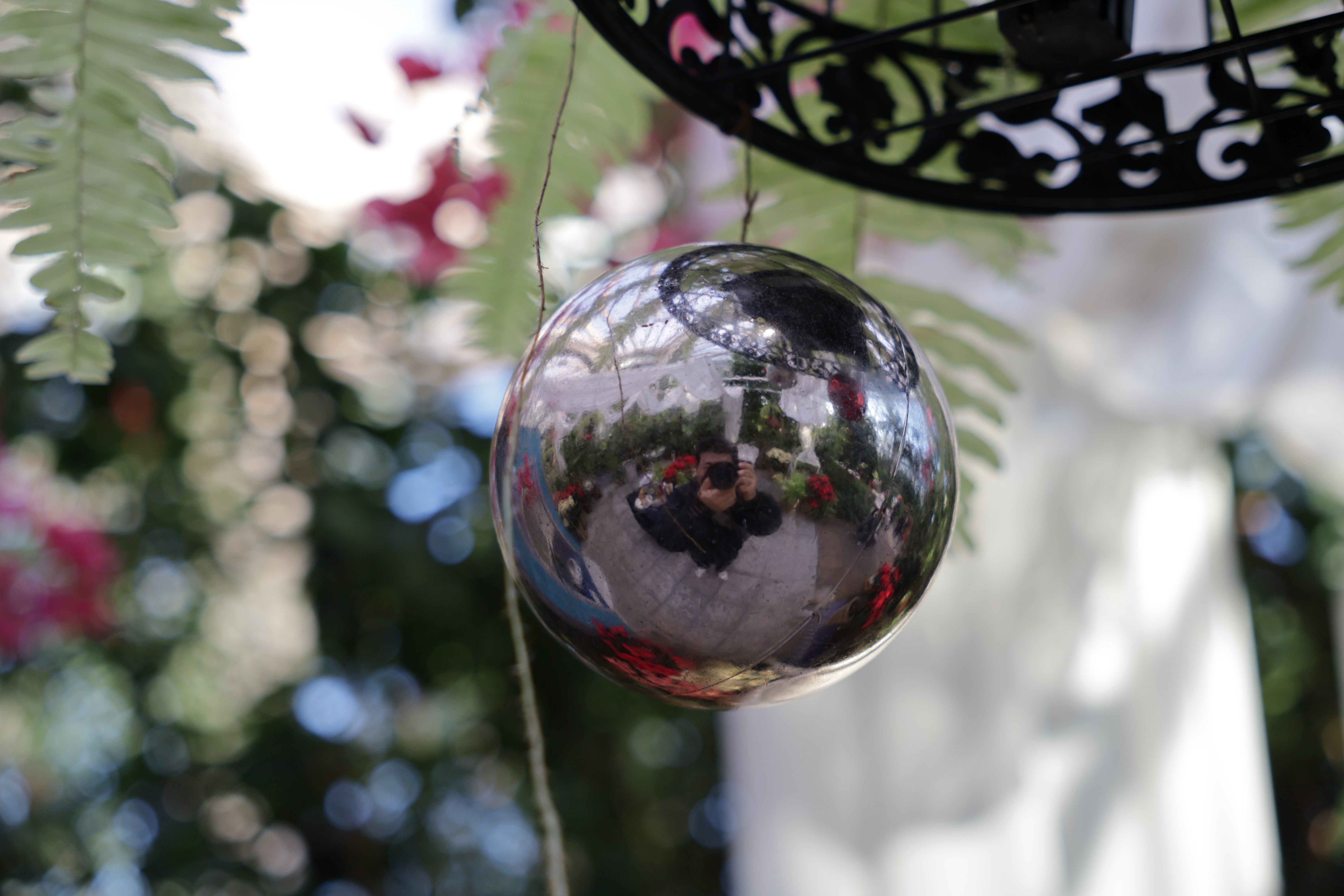 겨울 어느 날 따듯한 서울식물원 갔는데 내국인 외국인 할것없이 많이 왔는데 이번겨울은 크리스마스를 테마로 꾸며있었는데 구슬이들이 주변환경과 잘 어울려져 있어서 나를 거울보듯이 구슬속에서 보이는 사진을 찍는 내모습을 표현해밨읍니다.