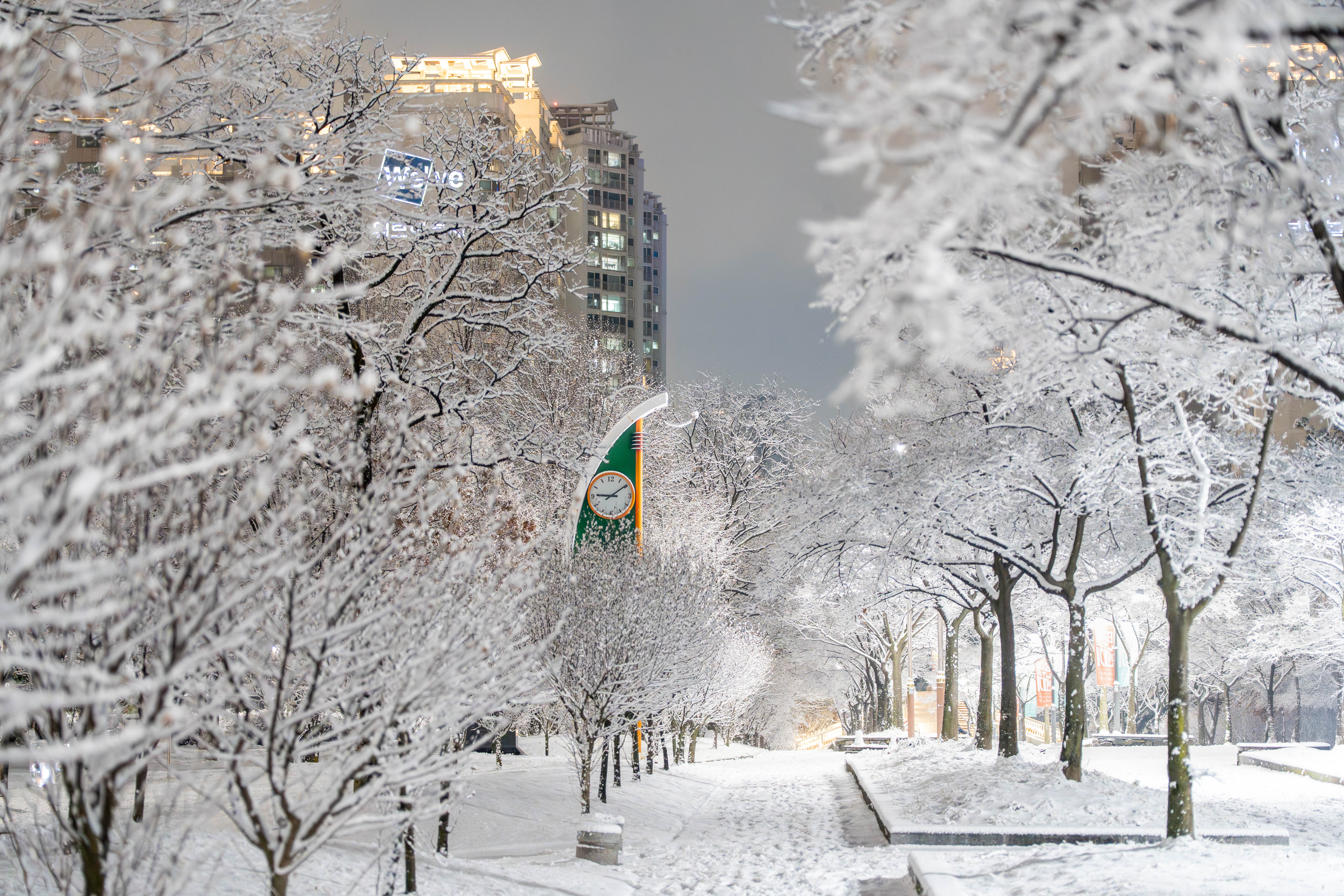 첫눈이 내려 아름답게 눈꽃길이 핀 공원길~