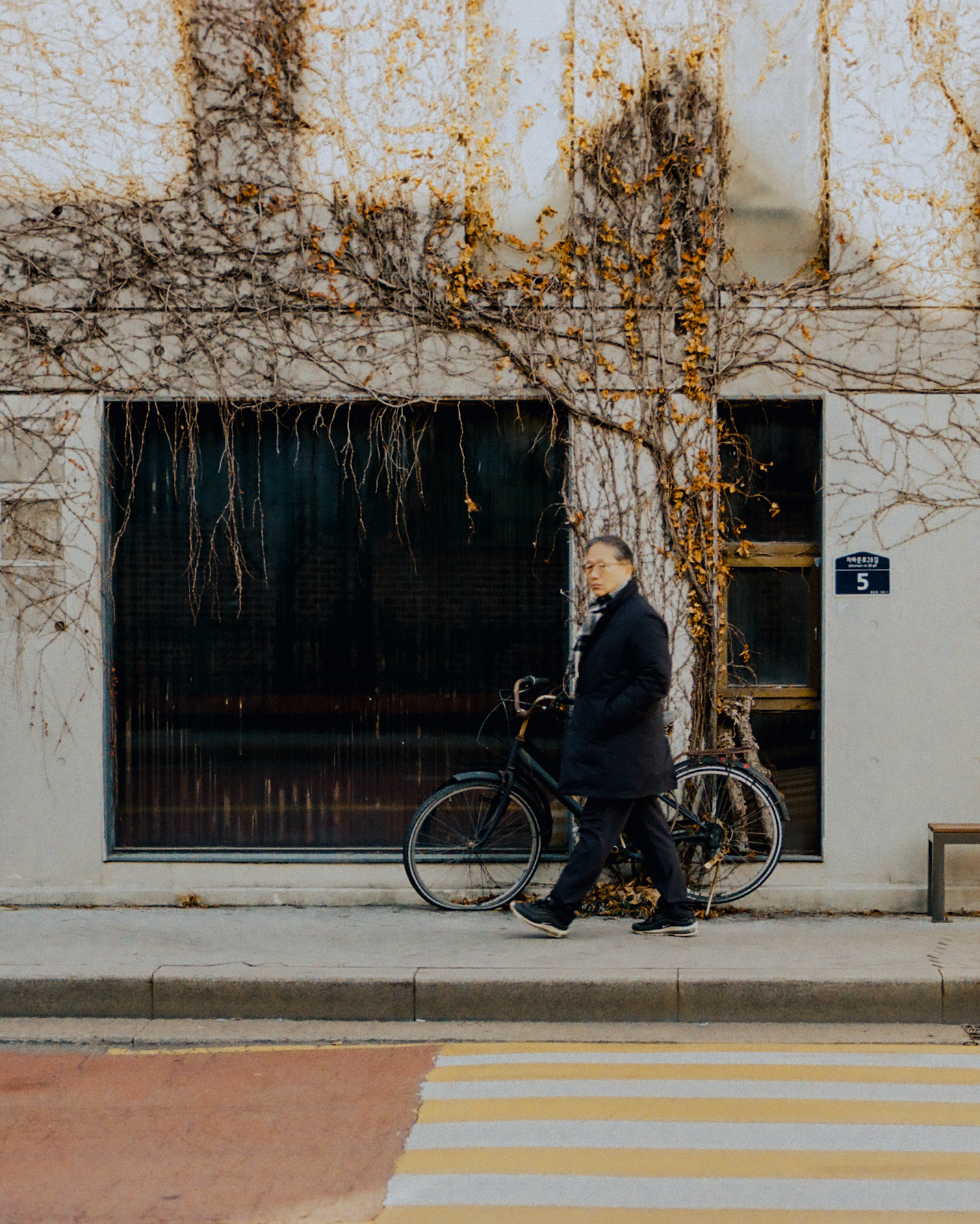 스트릿 사진은 낚시와도 같다고 생각합니다. 늘 아무생각 없이 걷는 일반적인 상황에서도 그날의 첫순간을 기다리는 재미가 있는 사진이라고 느껴요. 자전거를 타는것처럼 찍힌 이사진이 이날의 첫순간이자 다시돌아오지 않을 시간입니다.