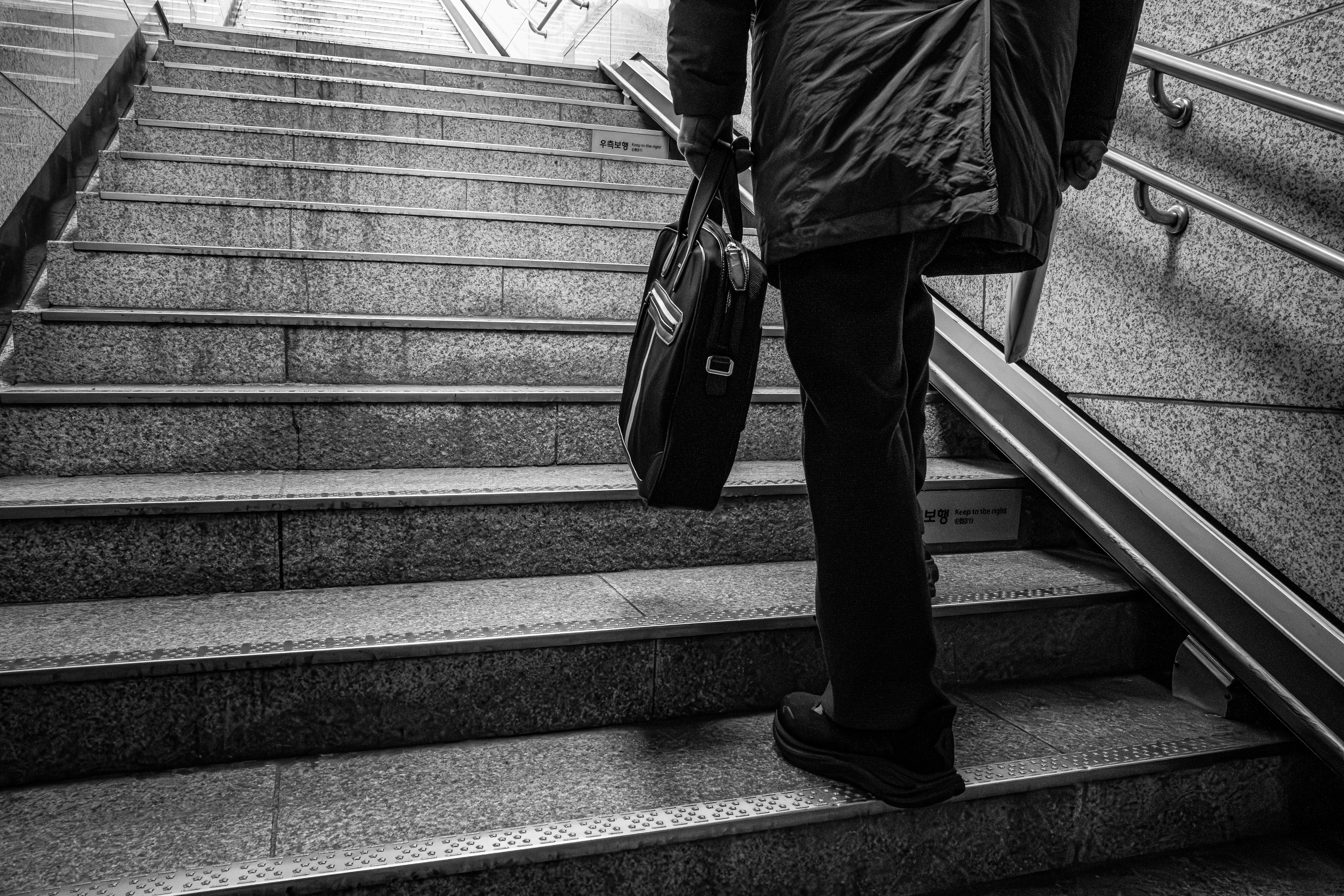 계단 한 칸 가방 한 개, 출근은 늘 같은 방향으로 흘러간다.