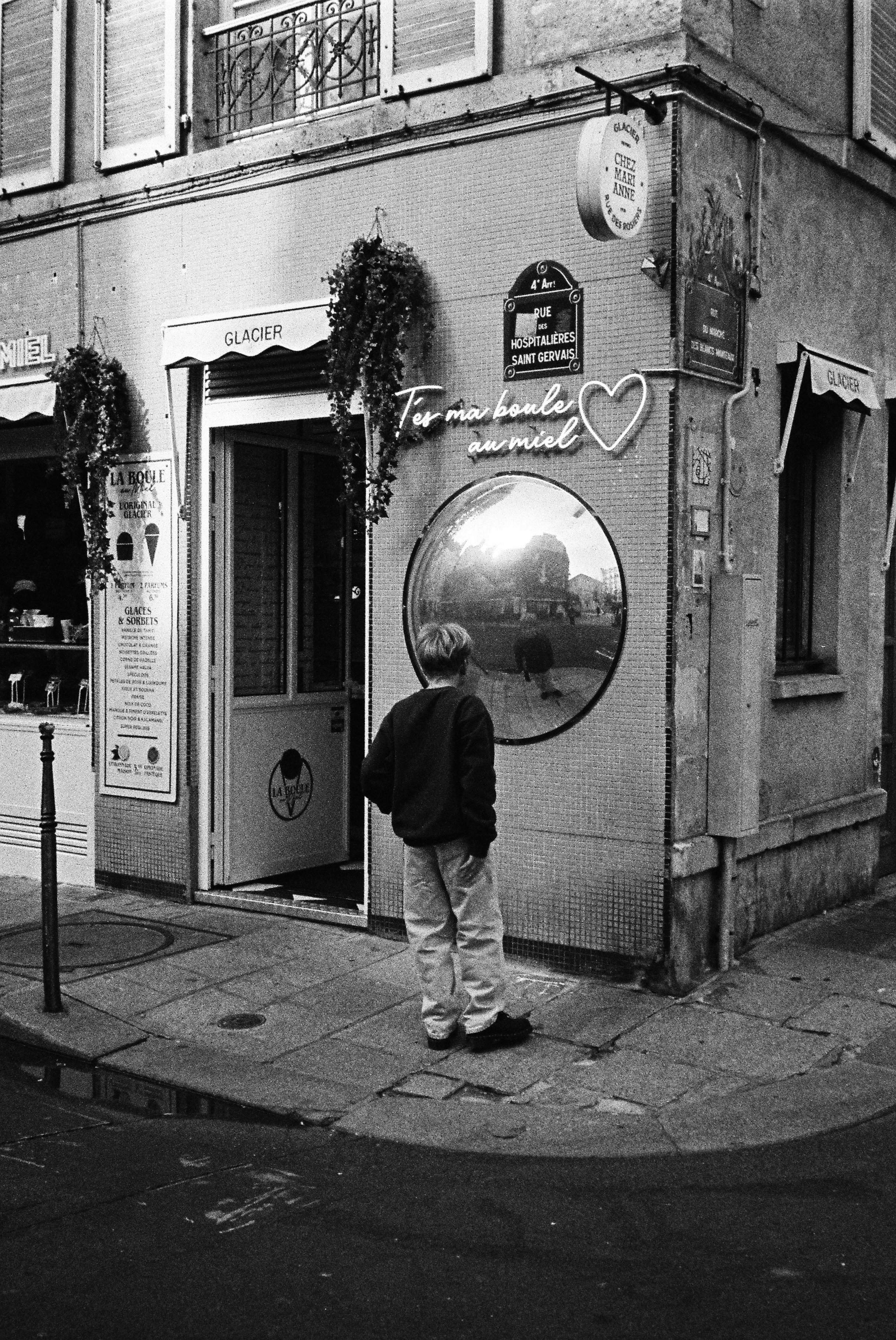 파리에서 우연히 찍은 거울을 보는 아이입니다.